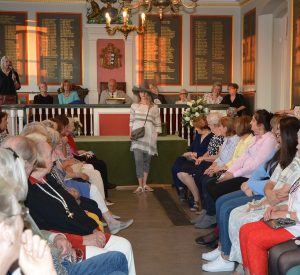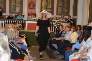 The models, all real people, led by Jane Conlin, who also did much of the organising of the show with Lesley Farrow, led the way, to be followed by Gemma Lister, Jeannie Hawkes, Lauren Page, new to the modelling team and presenting a younger image to the audience, and Tia, Lady Ampthill. They made truly lovely models and the hats supplied by Herald and Heart were an enormous success.