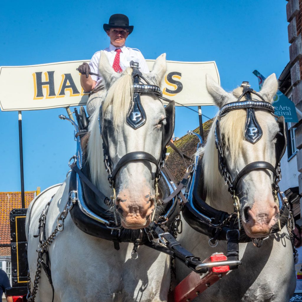 A further outdoor highlight was the Harvey’s Dray and horses, back by very popular demand. They started and ended their tour from Rye College, stopping at the Buttermarket for photos and a break from the intense heat. A beautiful spectacle and the two gentle giants were on their best behaviour, delighting the crowds.