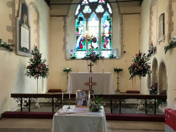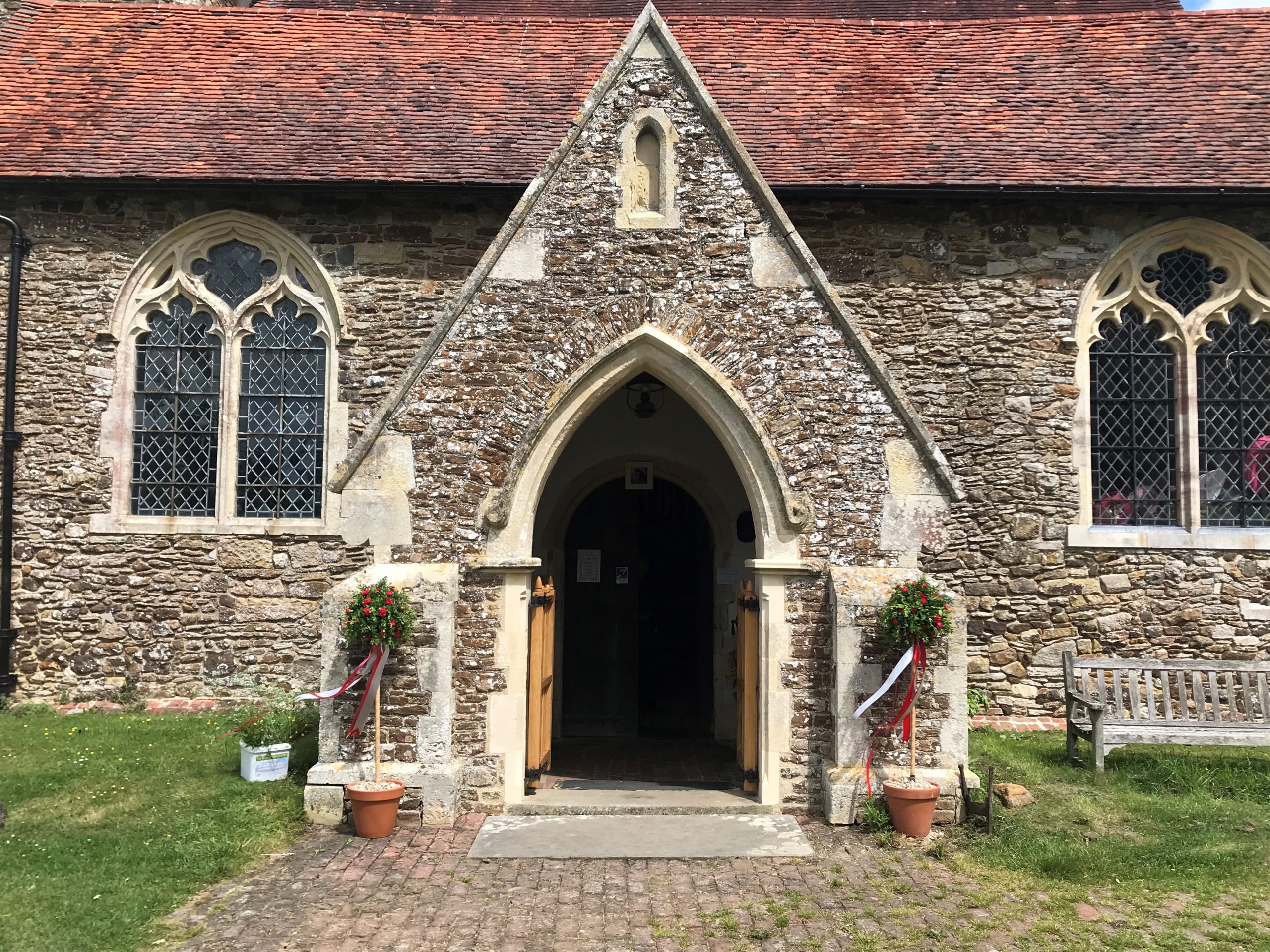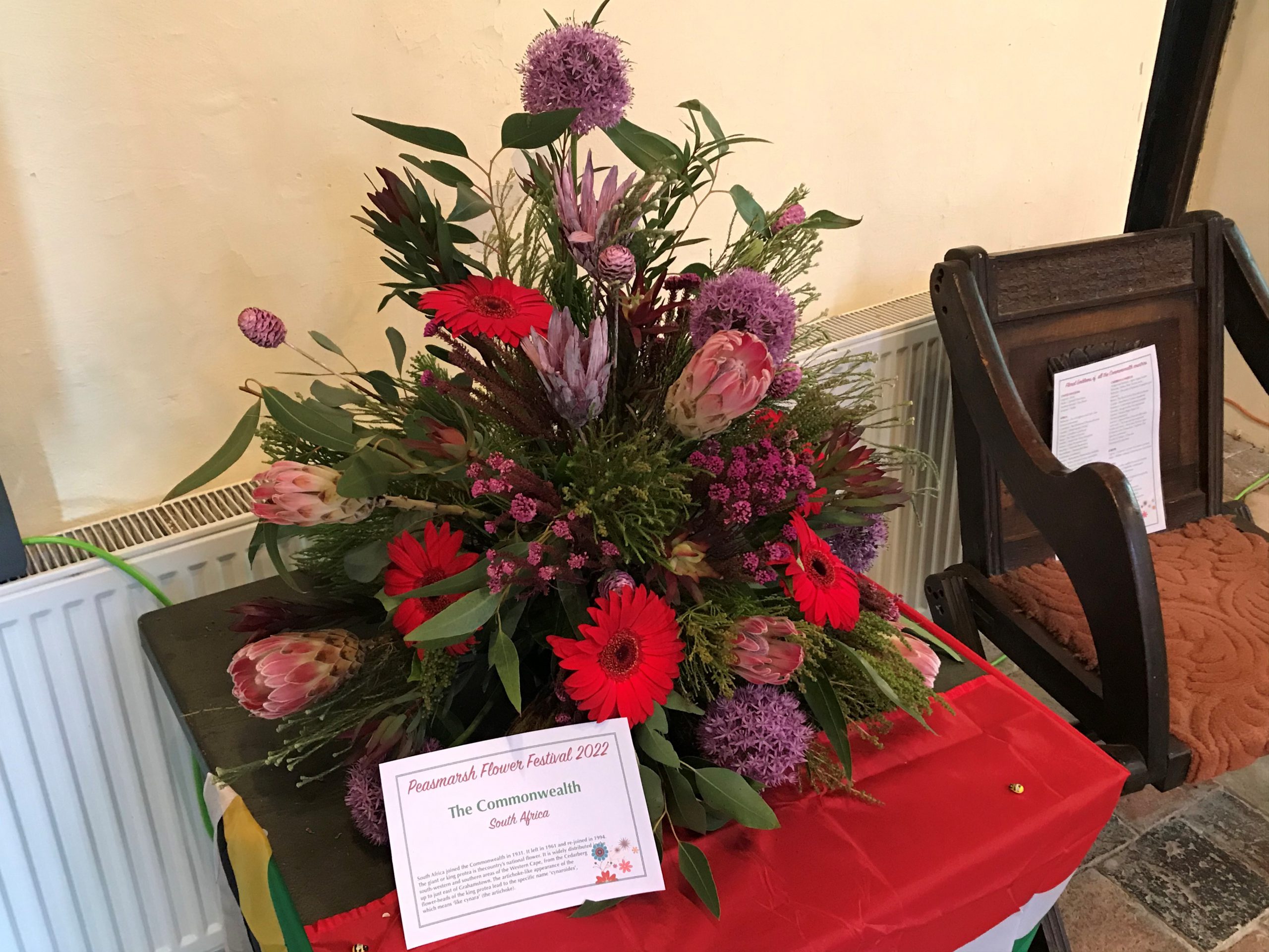 I’ve often driven past the signs advertising the Peasmarsh Flower Festival -you can’t miss them with the fluorescent green and with the distinctive directional banners at the bottom of Church Lane. Even the Peasmarsh village sign has been embellished with a floral tribute to Her Majesty the Queen, whose 70th year on the throne we are celebrating this year, culminating in a four day weekend.