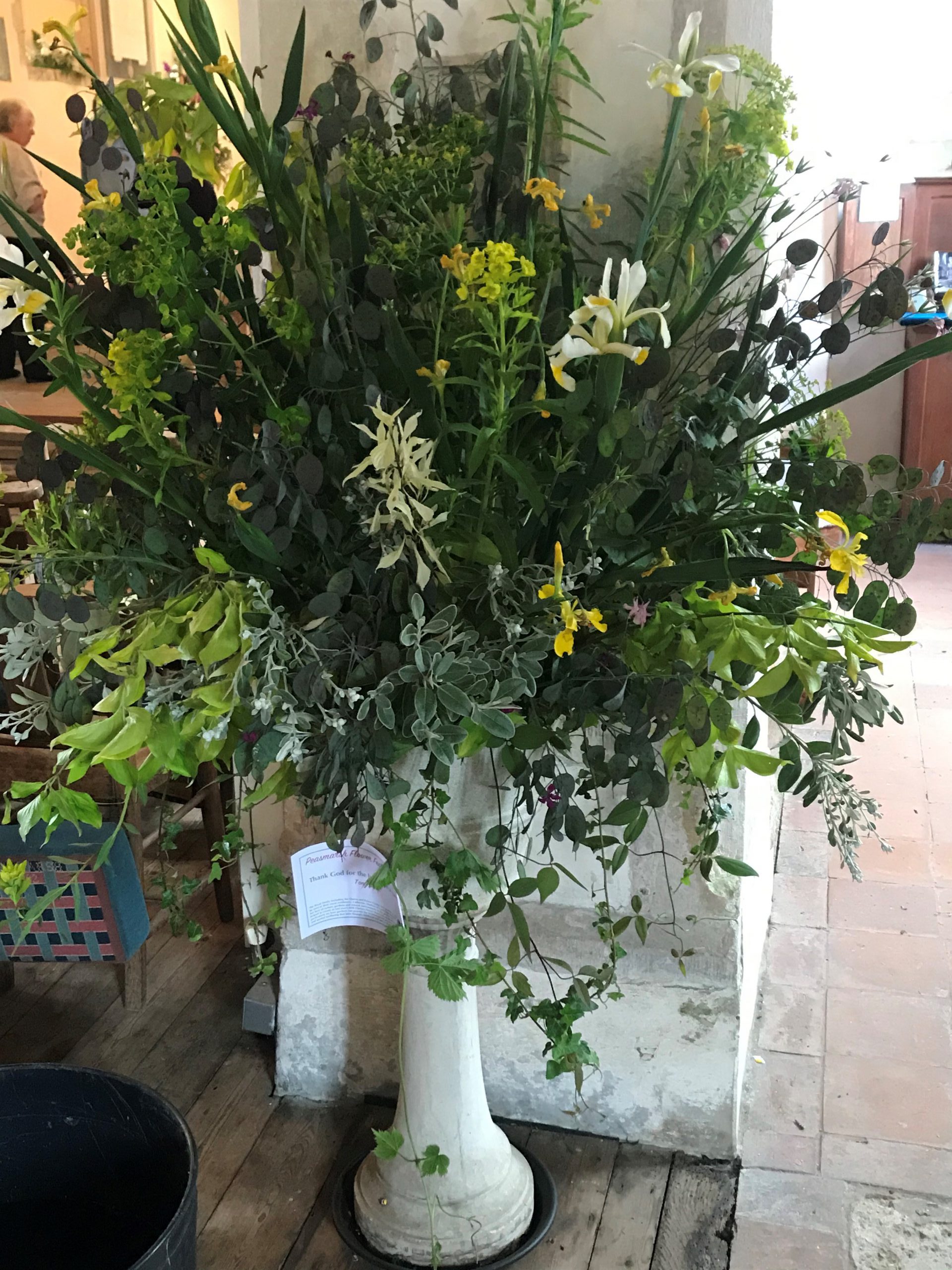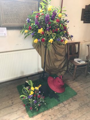 The superb maypole display outside catches your eye and adorning the double doors were two standard roses and in the vestibule various displays highlighting Riding for the Disabled. Inside the church, I bought my raffle tickets then started my slow walk around all the displays. What an amazing spectacle and what clever ideas had been put together. I’m told that a handful of displays were put together by flower arrangers but the majority were by locals who just wanted to take part for the fun of it and every single display looked very professional to me.