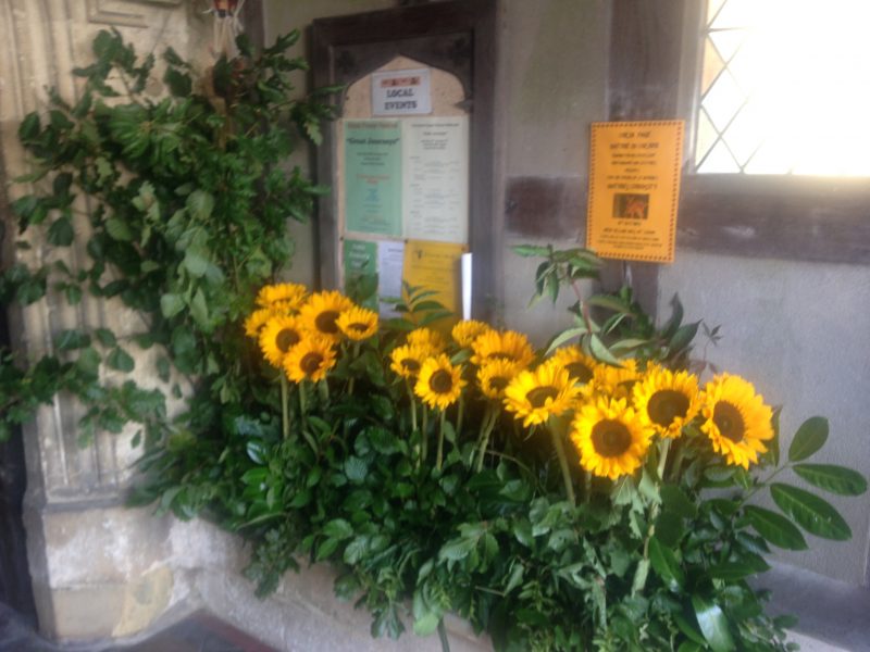 The 38th Annual Flower Festival was held at St George’s Church, Brede over the Bank Holiday weekend, August 26, 27 and 28. On the most beautiful sunny day, the festival, this year entitled “Great Journeys” greeted the visitors who had themselves journeyed to Brede, with a display of bright, upright sunflowers at the entrance. “How ever did they get them to stand up like that?” one visitor was heard to murmur to her friend. Nadia Florence-Marshall had added her arrangement, “Around the World in a Hot Air Balloon” to the vibrant porch and this bright and breezy start led into a church decked with flowers and greenery