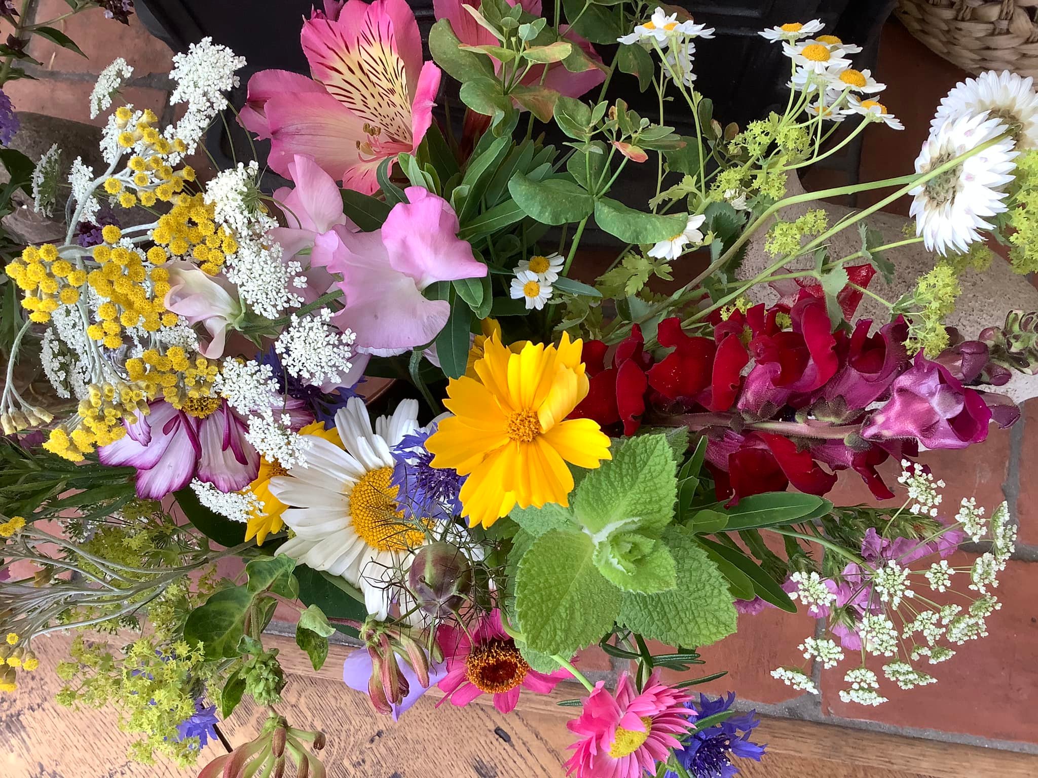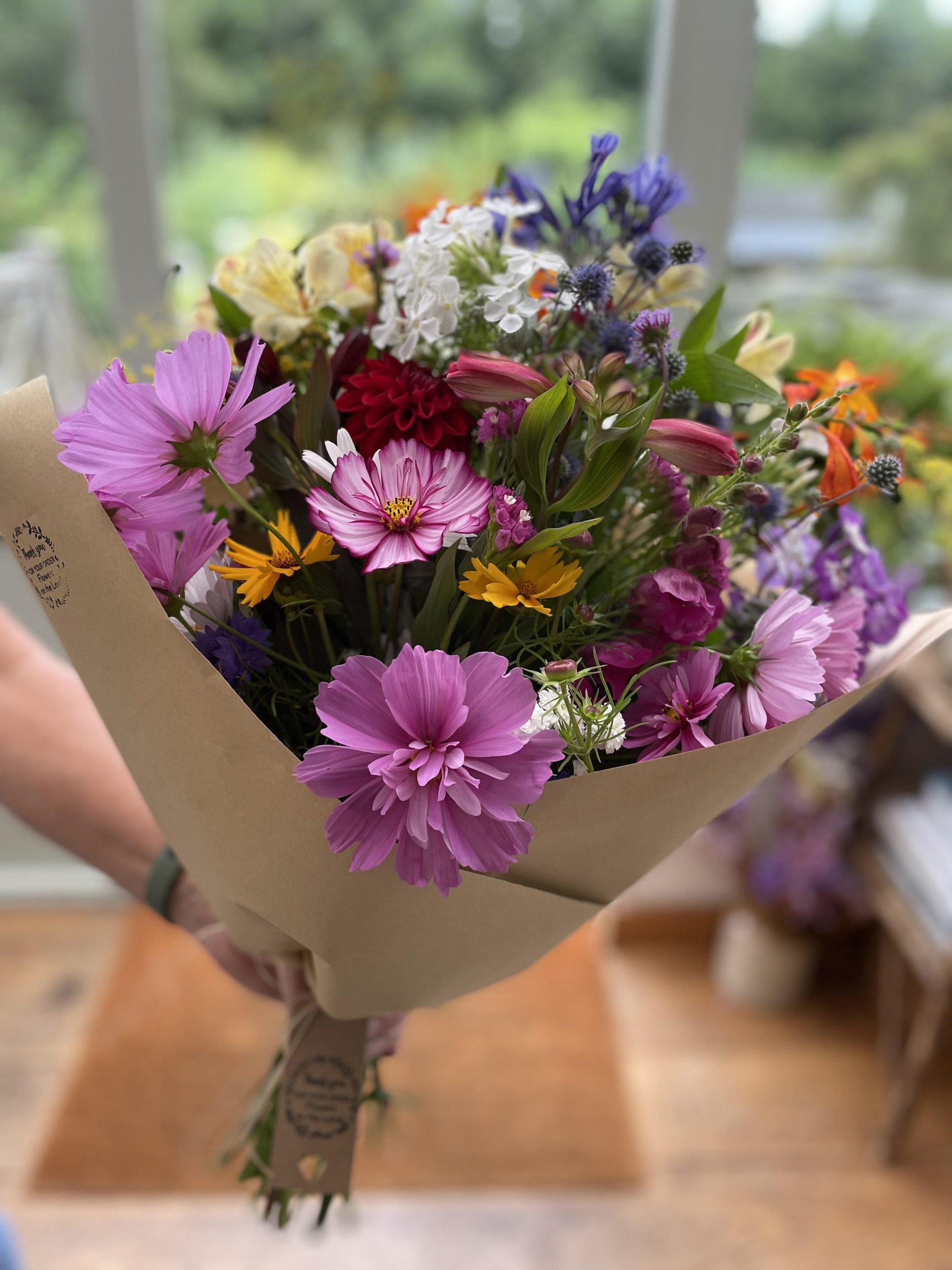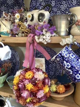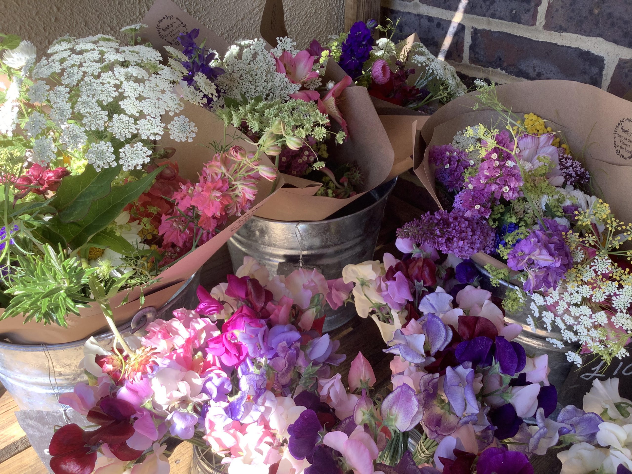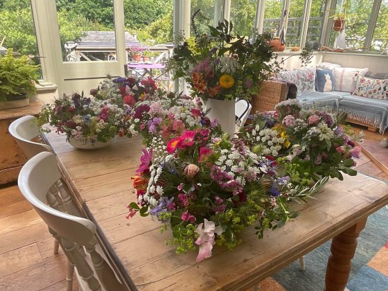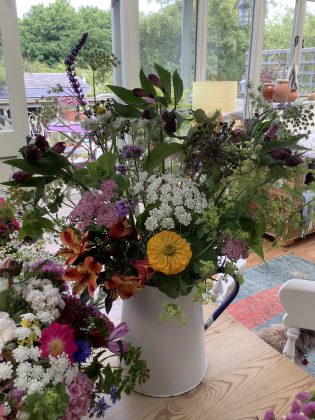 She does fresh flowers in the summer months and dried flowers in autumn and winter which are wonderful as Christmas presents. Everything is grown organically and the fresh flowers are picked the day before, long conditioned for twenty-four hours and then made into bouquets.