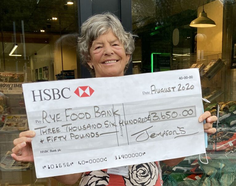 Last Friday Chris Emson (pictured) received an amazing donation from the Jempson Foundation. Donations made to the Jempson foundation now total £10,000 which is a staggeringly generous sum. Thank you so much to everyone who has donated to Rye Food Bank via the Jempson Foundation Food Bank Appeal.
