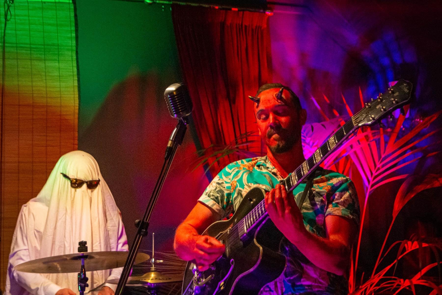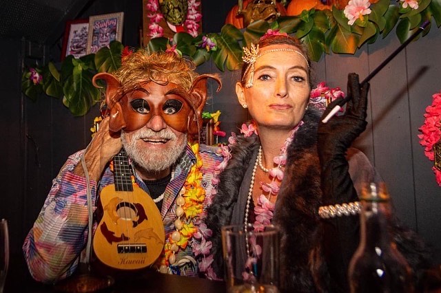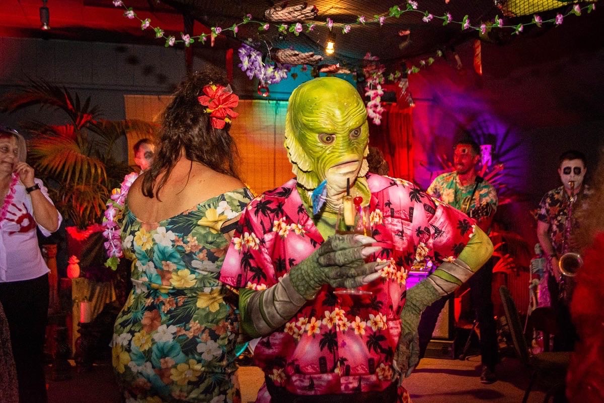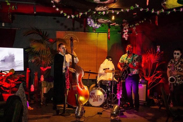 A Rye Good Time’s party – the Tiki Zombie Halloween Shake-Up at the Brewery Yard Club, attracted an eclectic ensemble, all seemingly committed to the undead, island vibe theme. A stonking set from The Violet Jive had the Creature from the Black Lagoon up on his fins, while Princess Peach did the twist with Mario, and shake it they all did.