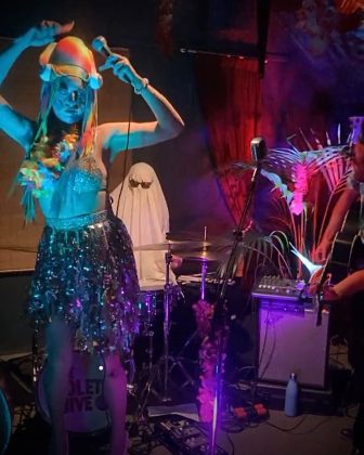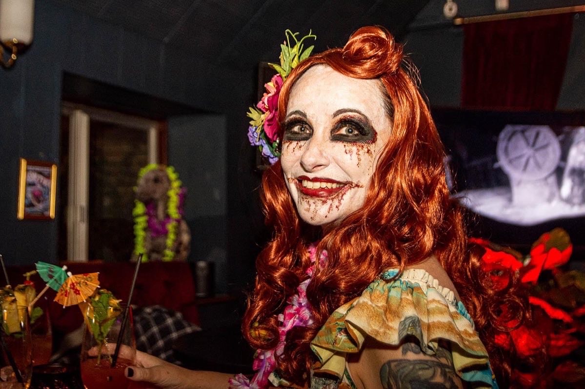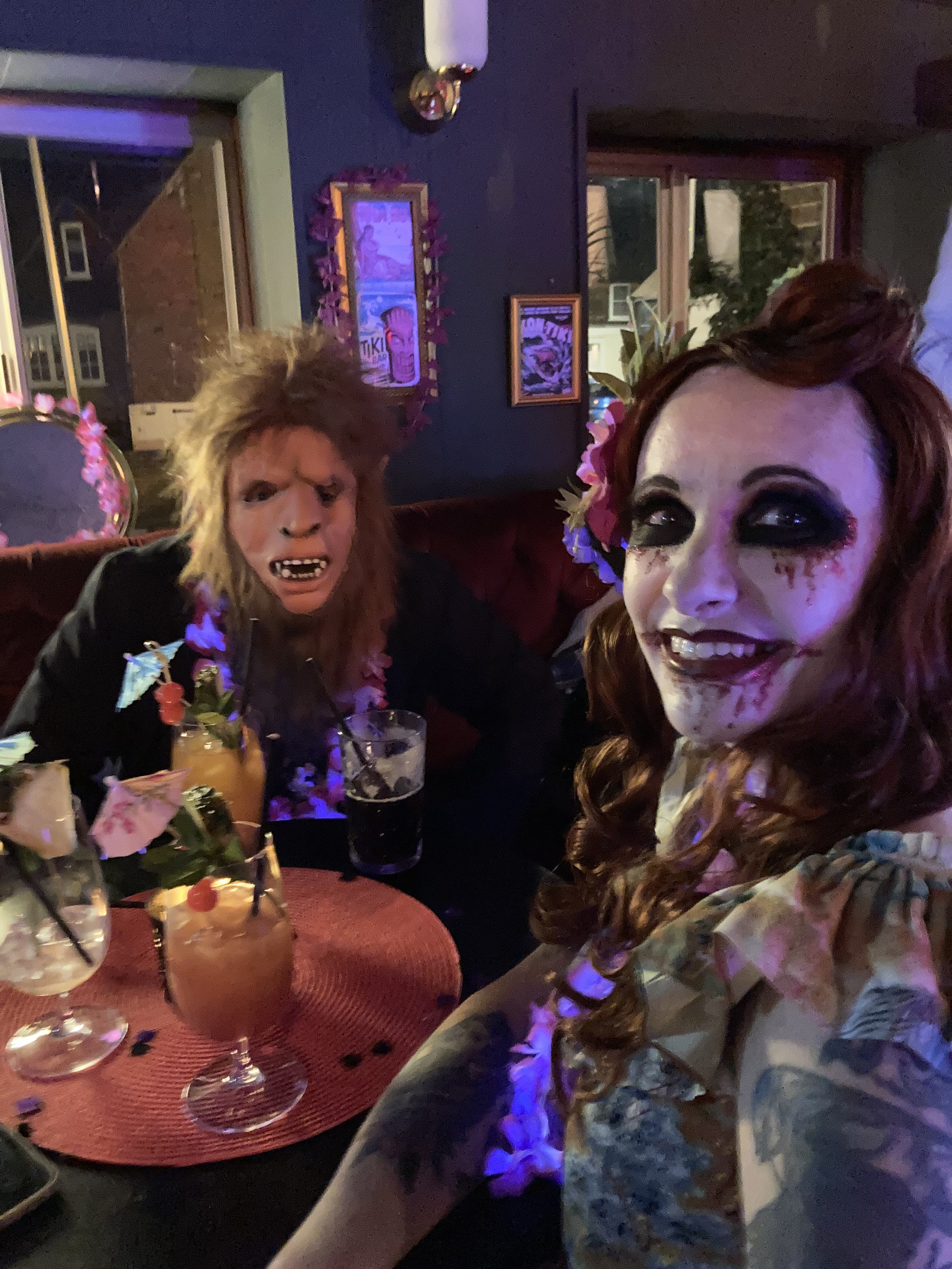 Local legend Daisy Danger wore a sequinned hula outfit to set off her meticulously authentic zombie makeup. It was makeup. Wasn’t it? Her late-night ghost story explored the tragic entombment of the lovers of Turkey Cock Lane and then Daisy joined the band to perform the Monster Mash.