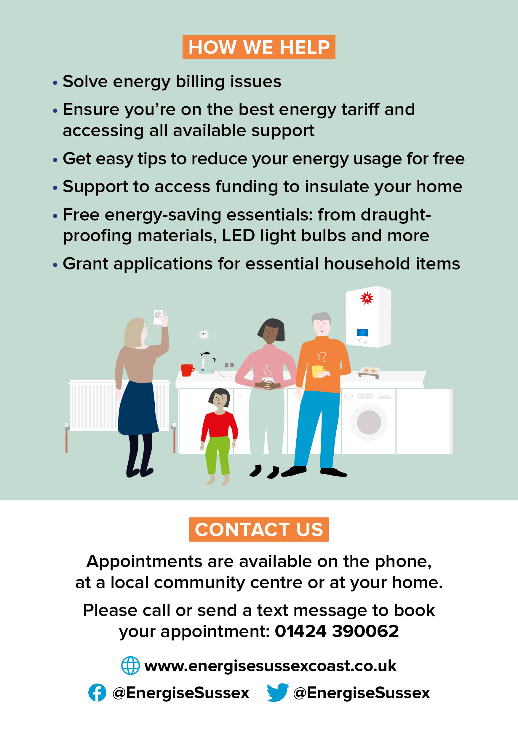 People can request a telephone appointment or home visit. To book either, please email: kate@energisesussexcoast.co.uk or call 01424 390 062 and speak to one of the team. You can self refer or, if using the food bank they and the GP, can make a referral for you. The helpline is the same telephone number as above. Kate Meakin is in the office Monday to Friday between 9:30am – 2:30pm.