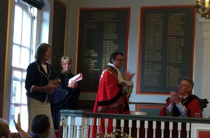 She had been nominated by Cllr. Rebekah Gilbert and received her scroll of admission from the Mayor Cllr. Jonathan Breeds – both members of the musical group, the Rye Bay Crew.