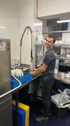 After celebrating his graduation, Chris began an exciting new paid role as a kitchen porter at The Mermaid in mid-October. He’s dived right in, getting acquainted with his role, and making new friends with his co-workers.