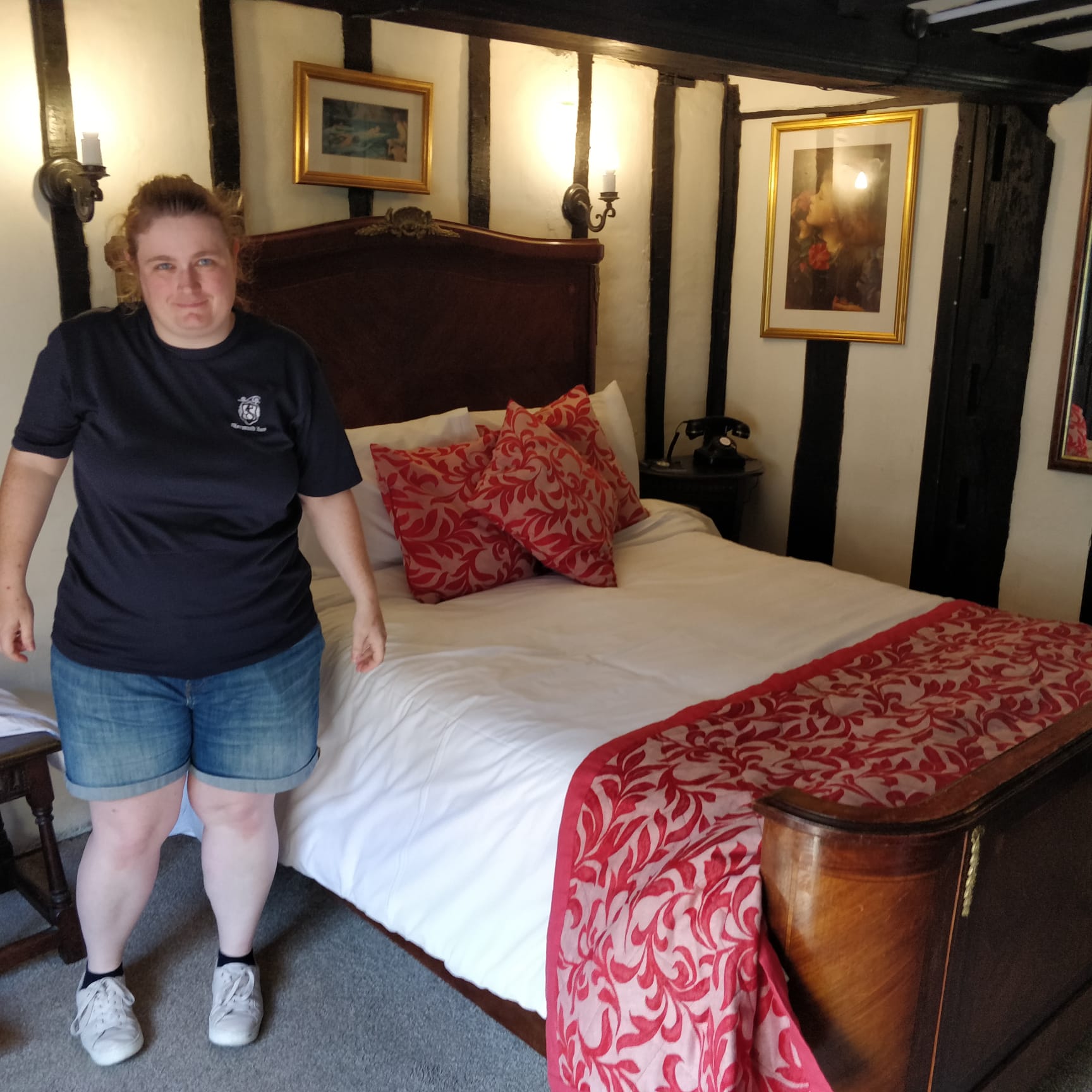 Two trainees who have recently graduated from Little Gate Farm after gaining employment in local businesses are Laura and Chris who both work at The Mermaid inn. Laura is thriving at The Mermaid as a part-time housekeeper, with her job coach set to exit by mid-December. She’s on her way to full independence in her paid role!