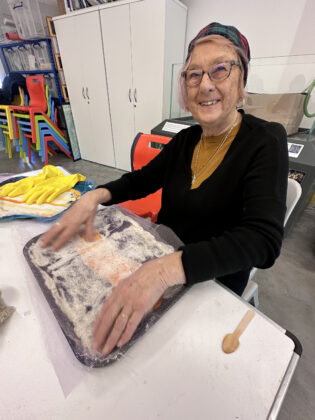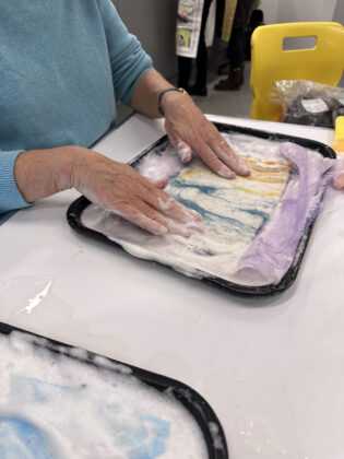 A group of crafters met at the Rye Harbour Discovery Centre on Saturday March 11, keen to get involved in a wet-felting workshop. After a short introduction on the history and technique of felt-making from Amanda Martin, who was leading the course, the group set to with raw fleece, water, soap and plenty of elbow grease to create their own small piece of this fascinating textile. They also sampled the carding process to understand how the wool had been prepared for use.