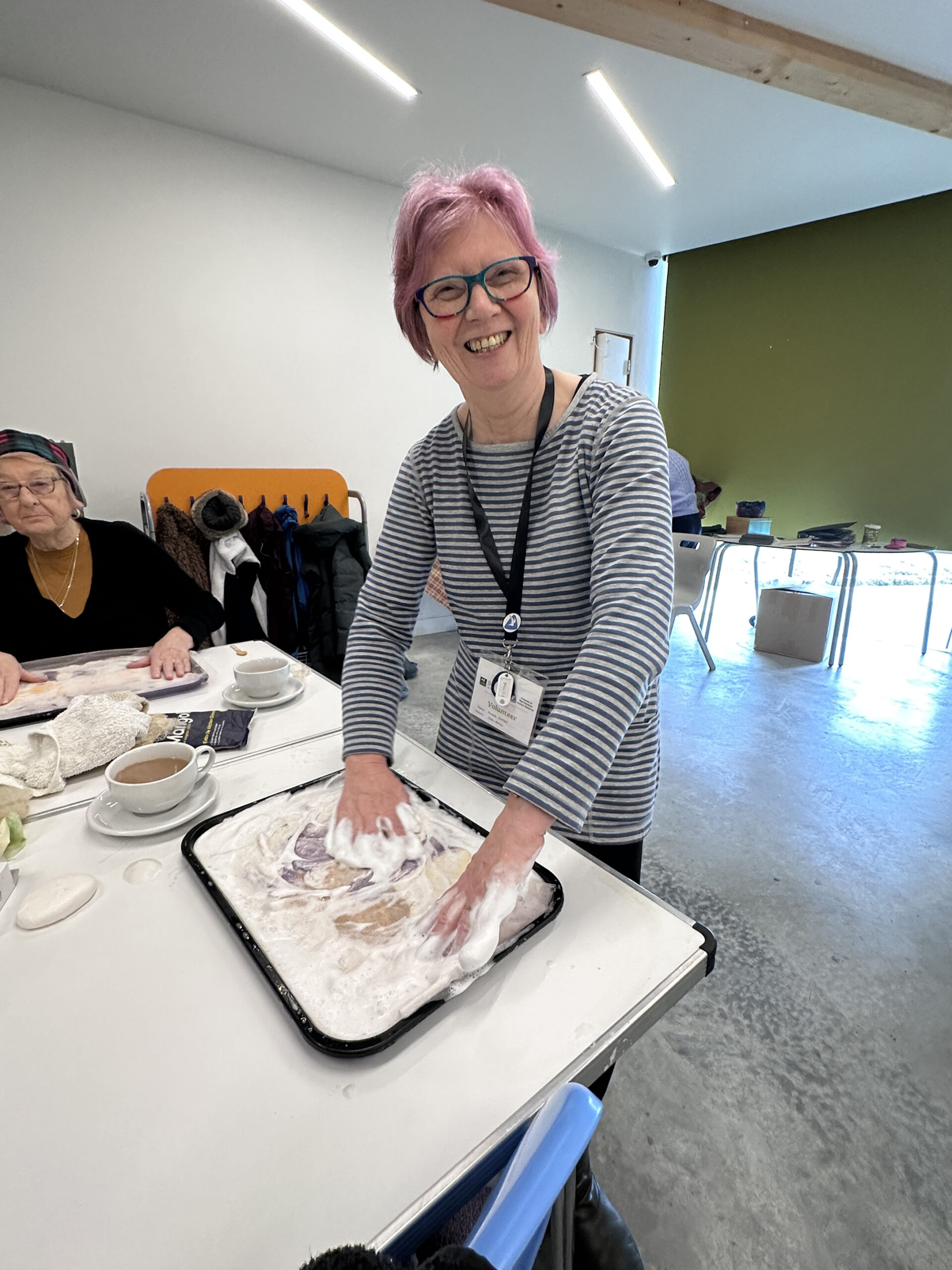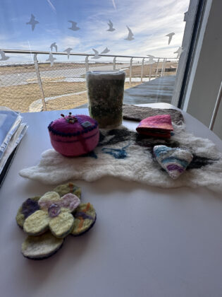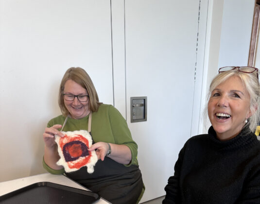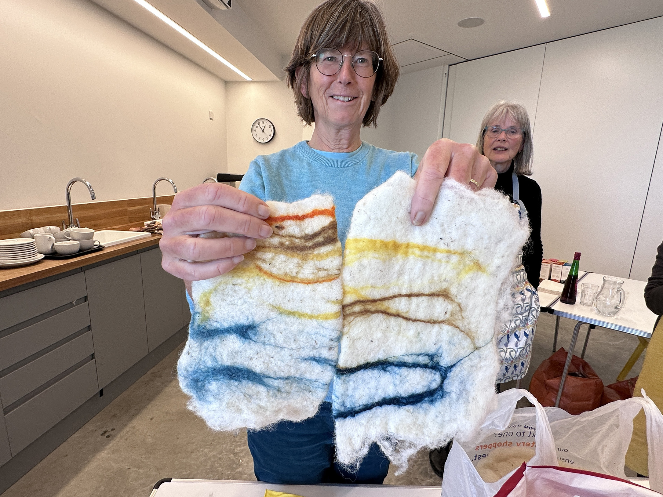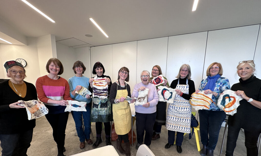 Jo Carter-Wilson, who came with a group of friends, had a super time. “We all thought it was a great way to spend a Saturday morning, learning and developing our creative skills in felting. We were well led and guided in our efforts in a friendly, supportive group and beautiful location.”