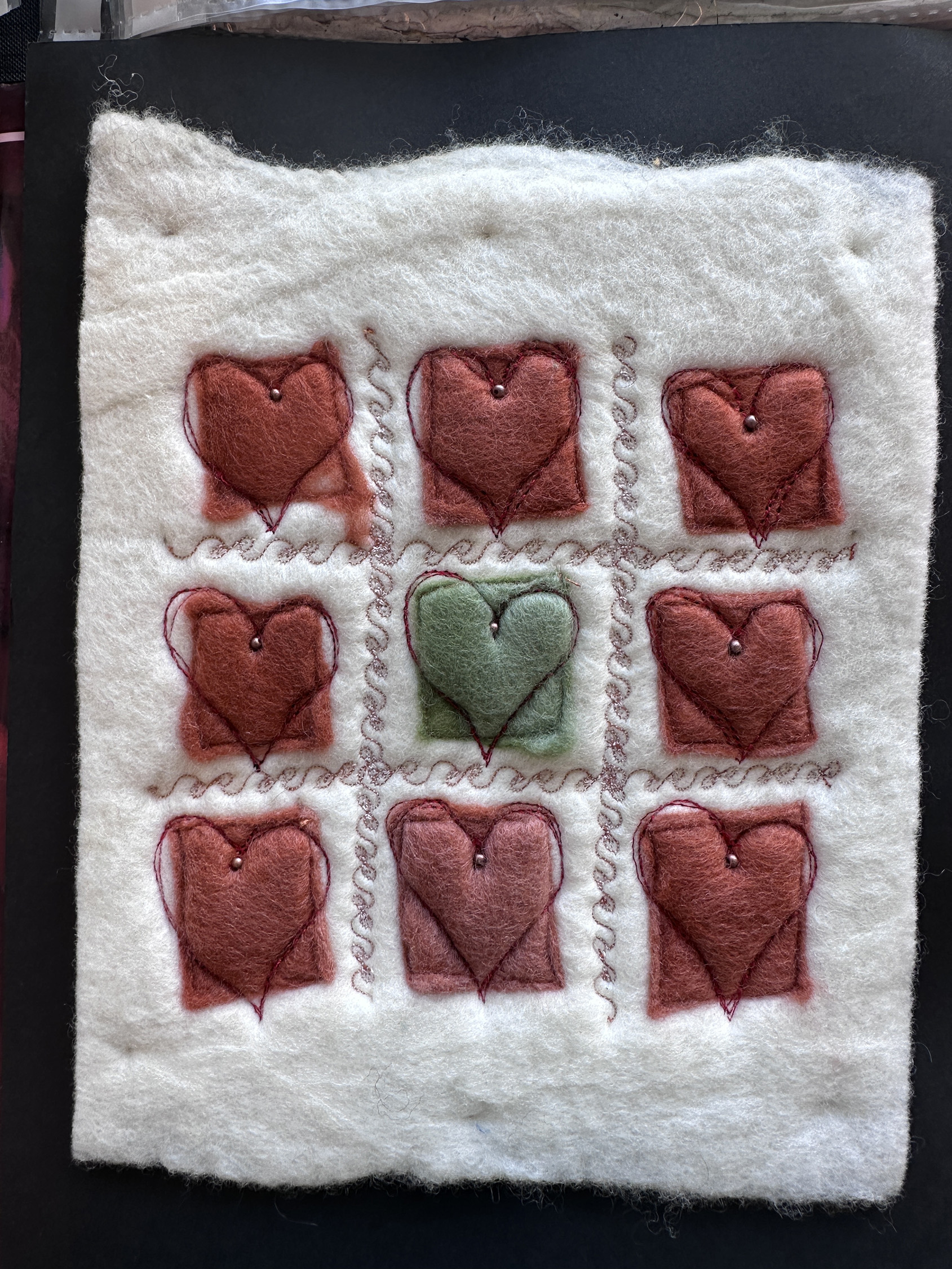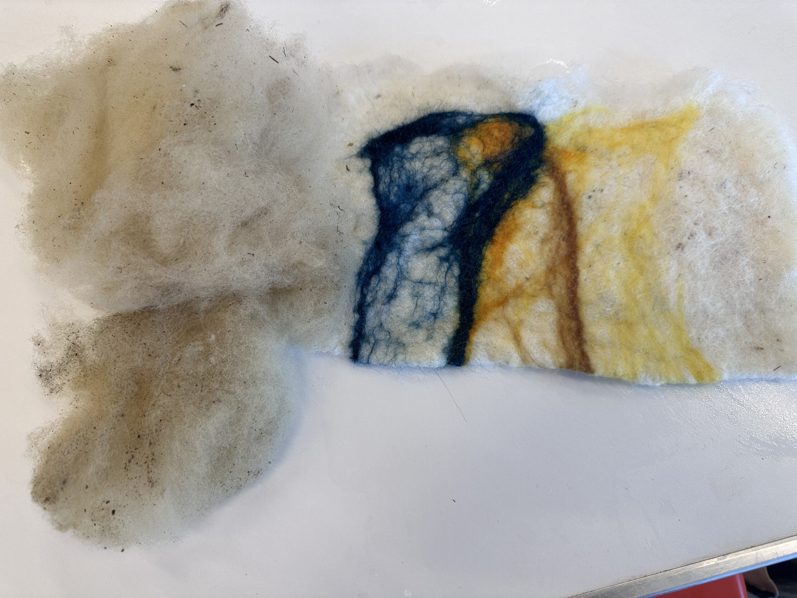 “The secret is wool, water and hard work and, by the end of the session, all had produced a piece of work to take home, perhaps to keep as an artwork or to be further worked and embellished to be used in some other way.”