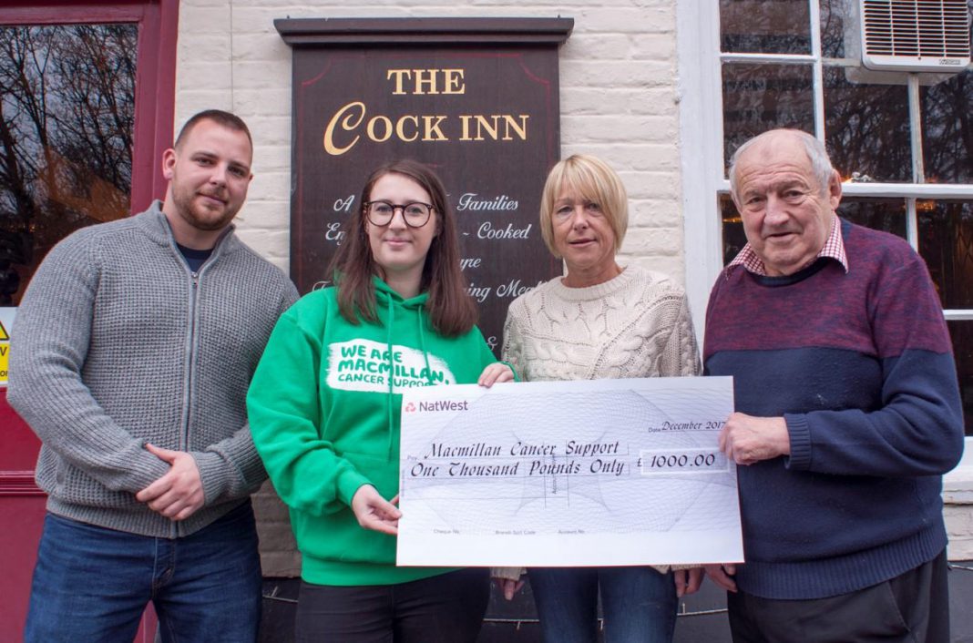 On receiving the cheque outside the Cock Inn, Peasmarsh, on Wednesday December 29, fundraising officer Emma Grant of Macmillan Cancer Support said: “We can’t thank Rob and all his supporters enough for the amazing total raised. Last year 620 local people were awarded Macmillan grants to help with the costs of cancer, the £1,000 raised could help so many more local families in a similar way this year.”
