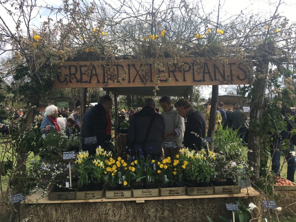 Twenty three nurseries were represented, including Great Dixter itself. In spite of the cold weather conditions this winter, there was a wonderful display of plants across the field, and a really busy atmosphere. The pictures tell that story. The weather was fine on Saturday, when more than 1,000 people went through the gates, but the wet weather on Sunday caused parking problems, with some areas too wet to use.