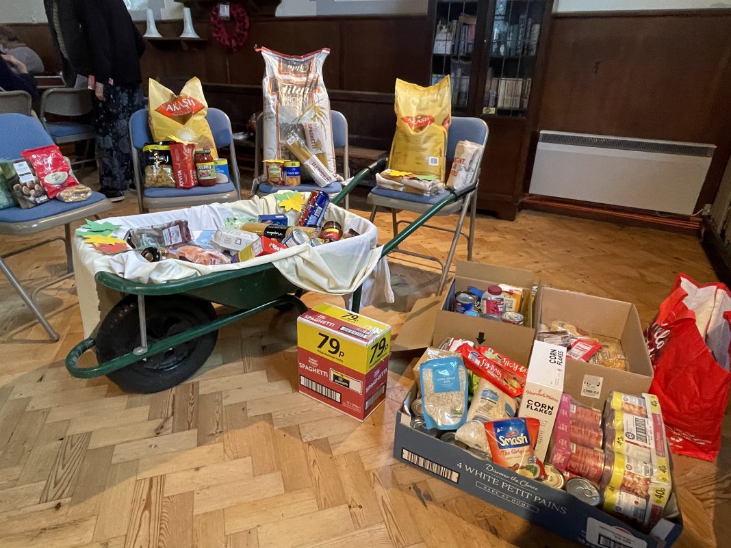 The church at Rye Harbour has an evening prayer service on the third Sunday of every month. September’s service was dedicated to the harvest and it was a time for the people of the village to bring food for those less fortunate. Chris Emson from the Rye Food Bank came and was thrilled at the offerings which she received. A wheelbarrow was filled to capacity and there were numerous boxes filled with a variety of food. A big thank you to all those who brought donations, especially to Stephen and Richard Tollett of the Harbour Stores in the village, who thoughtfully put together ingredients for twenty-two families to have a complete supper.