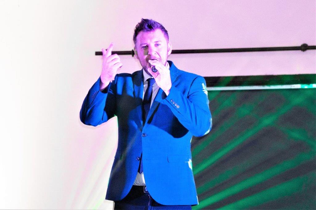 First on stage was Ollie Mulkeen, an international vocal entertainer and accomplished trumpeter who arrived in the UK the previous day from the cruise liner where he had been performing. He wowed everyone with a great performance of Rat Pack classics and solos on the trumpet and flugelhorn.