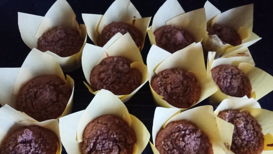 Spoon the streusel topping over the muffin mixture in the cases, dividing it between them until all the topping is used.