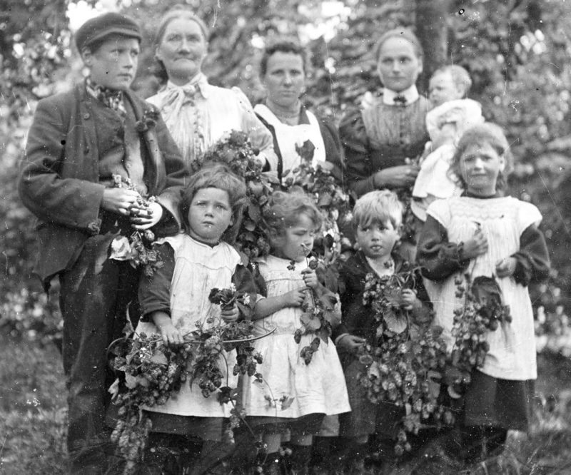 Tally sticks, made of wood and showing the number of baskets picked, were superseded by tokens, given as temporary pay for baskets filled with hops, then redeemed at the end of the season. Hop-pickers then went to the nearest town to buy new clothing, discarding garments, shoes and boots in roadways. Sometimes three or four cartloads were needed to clear away the rubbish after a Saturday’s shopping.