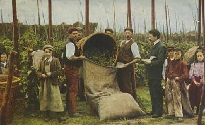 There were lots of interesting snippets. We learned, for example, that author George Orwell in disguise once worked as a hopper and lived in a hopper’s hut, his account of the experience an attempt to refute the notion that hop picking always made for an idyllic summer holiday. Hoppers’ huts (timber then corrugated iron), were built at the instigation of missionaries appalled by the insanitary conditions of earlier makeshift accommodation and were apparently an improvement on what had gone before — but they were still overcrowded with multiple occupants (including six-week ‘temporary marriage’ couples), and outbreaks of cholera and smallpox continued to occur. (Many hoppers, too poor to buy beer, had to drink dirty water instead.)