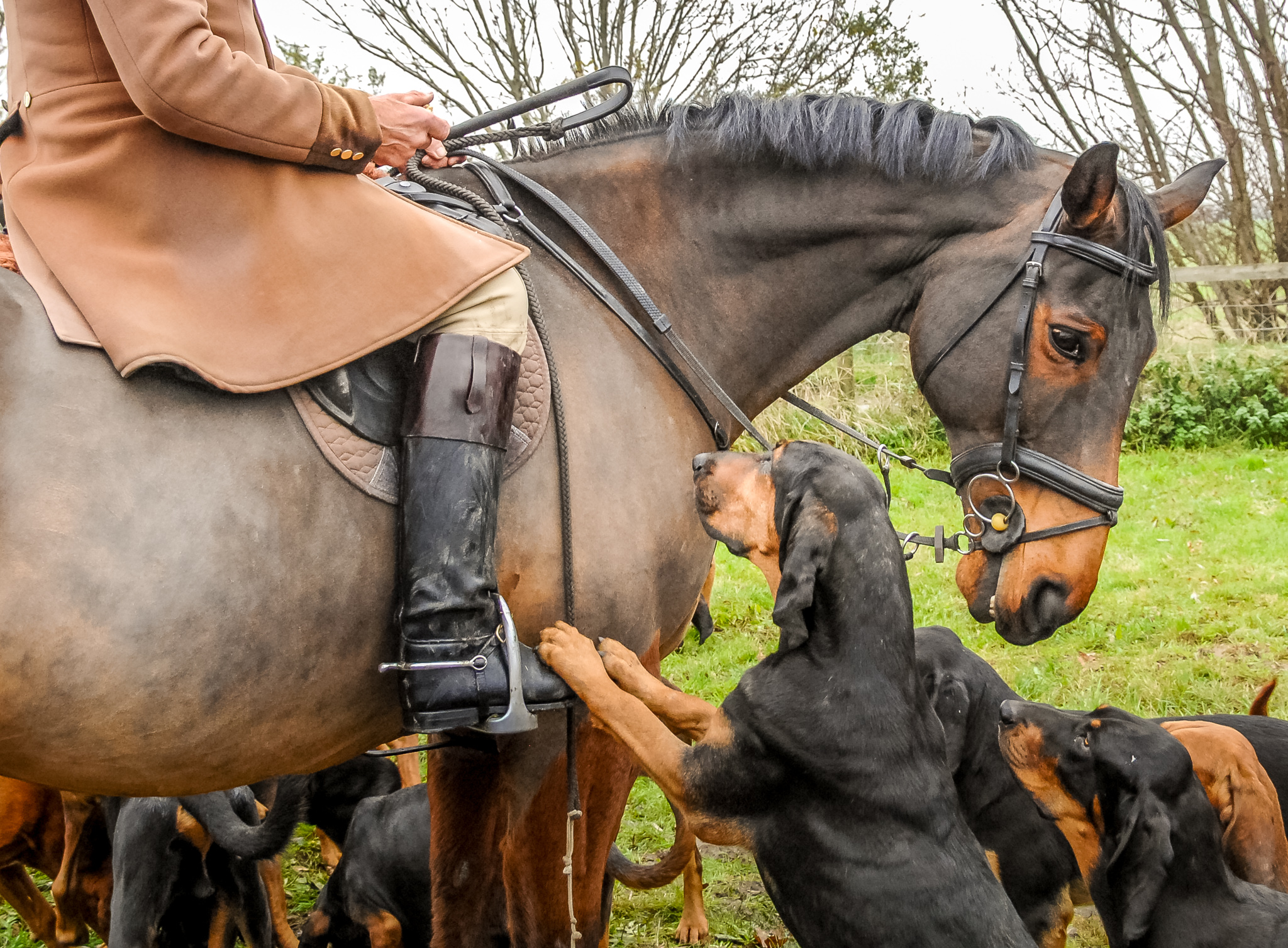 Unlike foxhunting, made illegal in 2005, the bloodhounds, based at Ashburnham near Battle, follow the “clean boot” – the human scent left by a man or woman running ahead of the pack. All their meets are held by the generous invitation of farmers and landowners, which is greatly appreciated by members as this type of hunting offers no clear benefit to farmers.