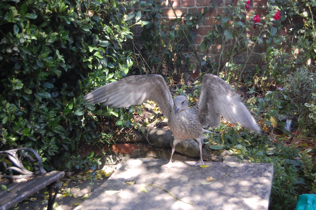 I was enjoying the stillness of the garden the other day when my visitor arrived, with much flapping of wings. We made polite conversation for a while, but my unspoken thought was “Have you come to stay?”