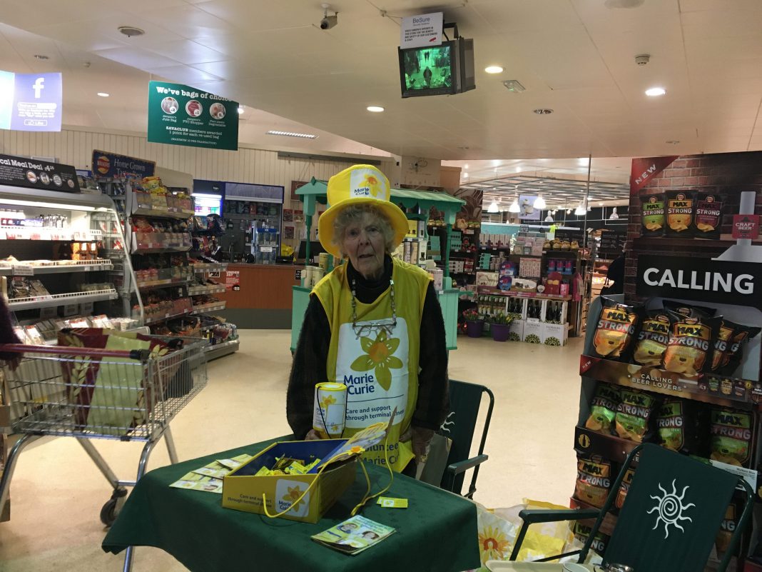 The annual Marie Curie Daffodil Appeal collection was held over this last weekend March 2 and 3, and Margaret Loveridge was on her hour of duty, raising money for the well known cancer support charity. Margaret is one of the more mature of our collectors, and although the weather had improved from the snowfall earlier in the week, she was really cold. Collecting by kind permission of Jempsons at Peasmarsh, the table and collecting box were safely inside the store, but nowhere was immune from the drafts,