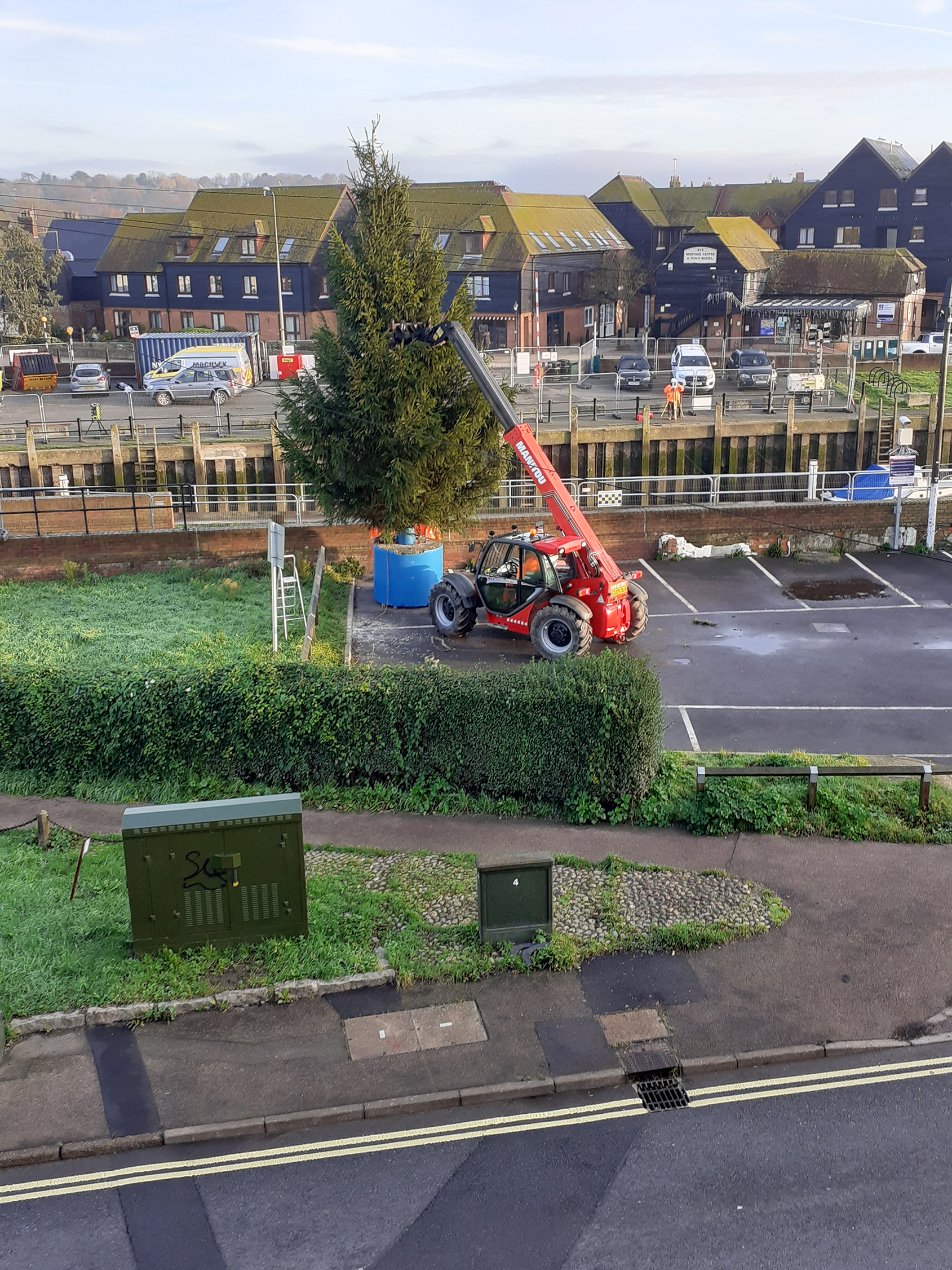 Thanks to Rod and Clive from Rastrum for placing the Christmas tree in position along with Tony Heritage, and Heidi and Chris from Martello Developments for supplying the tree. It wouldn’t make such a spectacle if not lit with the wonderful lights powered by the EA, organised by our very own James Bateman, Rye harbour master.
