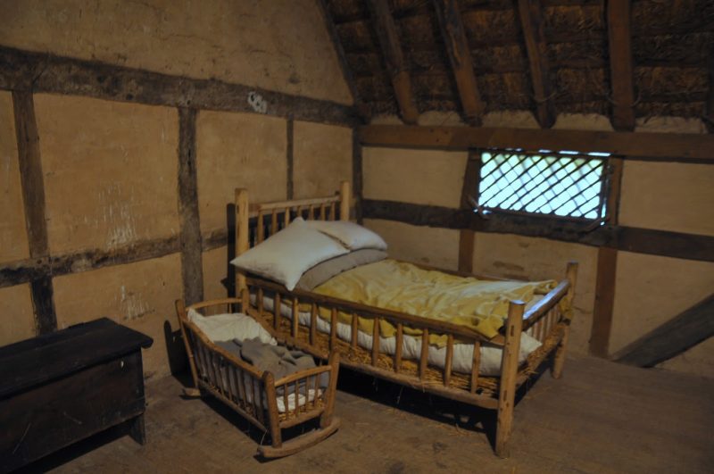 There is a strong emphasis throughout the museum on the contribution made by volunteers. Since its foundation by the small group led by Roy Armstrong, the local community have been much involved in making the museum the success it is today. At every stage during our visit we were able to turn to helpful and well-informed volunteers who answered every type of question – such as how the medieval occupants relieved themselves in the middle of the night and how the smoke on the floor at the centre of the hall escaped without a chimney. The volunteers in the mill and the smithy were all too happy to explain every detail of their trade including the origin of the phrase “rule of thumb” – it was the miller’s way of precisely calibrating the gap between the millstones by rubbing the flour.