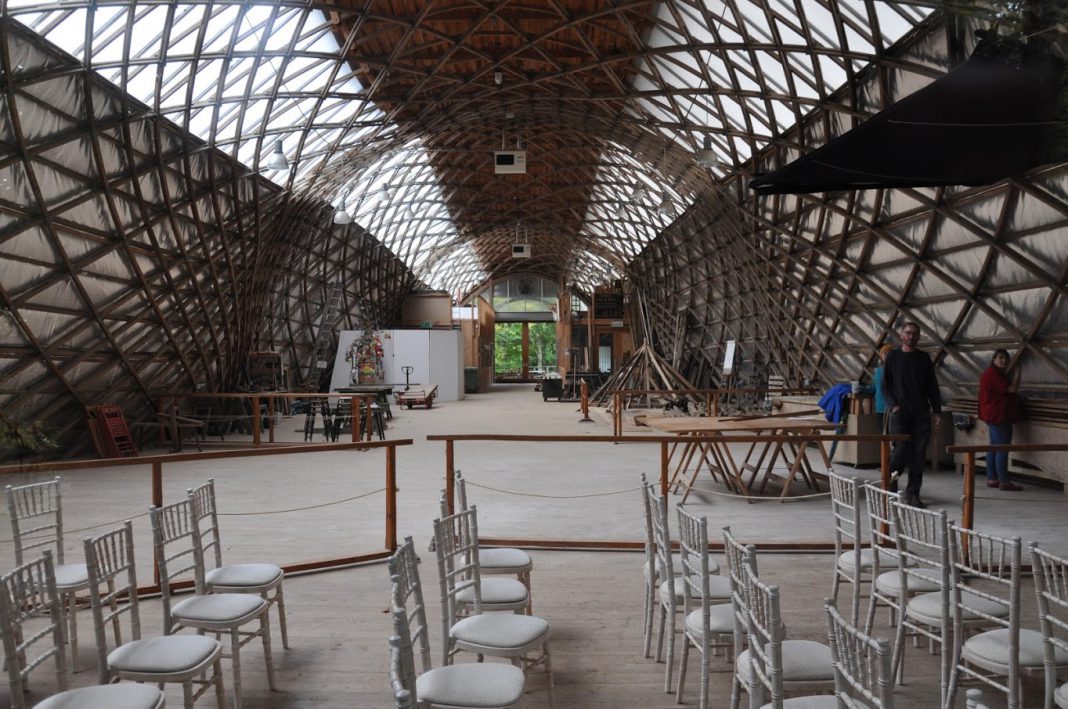 A recent addition to the museum was the construction in 2002 of the innovative Gridshell building. This was designed by Ted Cullinan of Edward Cullinan Architects with BuroHappold Engineering and the gridshell construction was the first of its kind to be built in Britain. Some members of our group were given a tour of the building and its large basement storage area. The spectacular upper interior space known as the Jerwood Gridshell Space is used as a conservation workshop and for training. The basement houses a large collection of tools and artefacts of rural life.