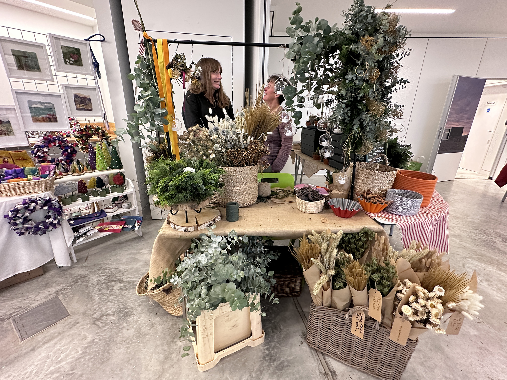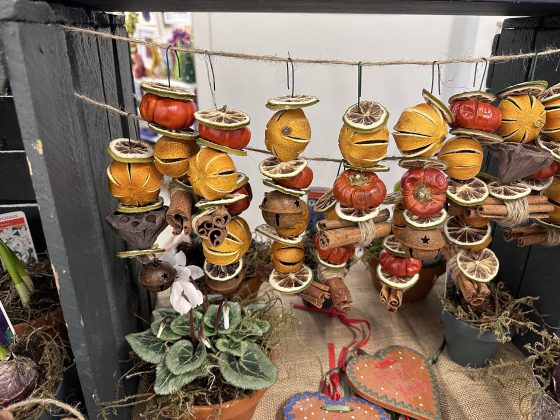 There were hand-made items including jewellery, ornaments, crafts, cards and wooden delights. The first thing that assailed you as you entered the room were the sights and smells of wreath-making. Scented oranges and foliage enticed one to sign up for a class of making wreaths later in the month. Textiles, homewares and hand-crafted chocolates were just some of the stalls that offered gifts for that someone special.