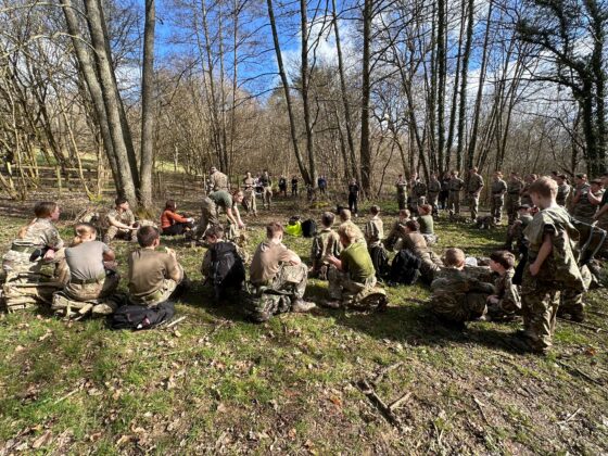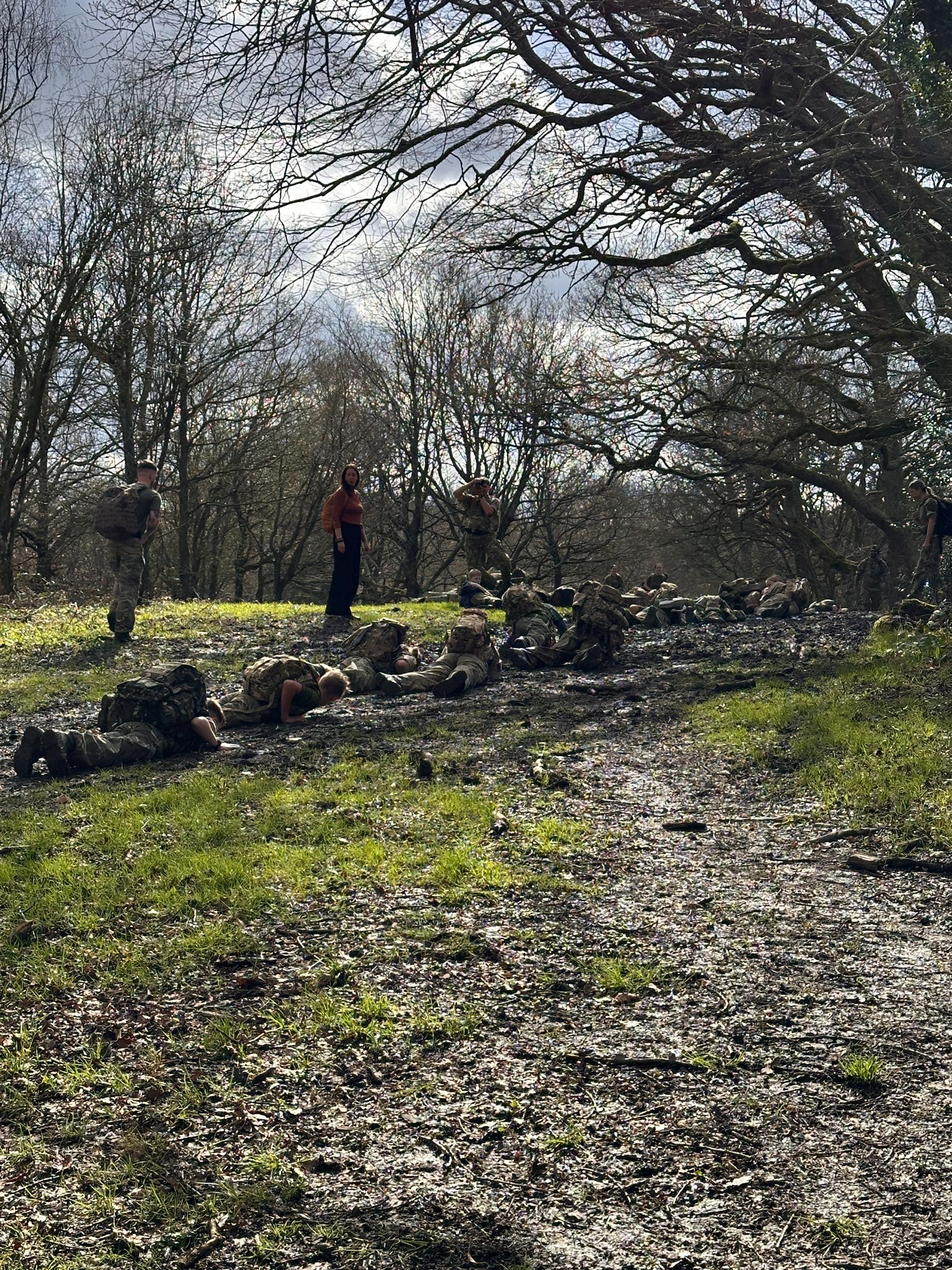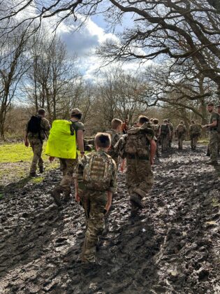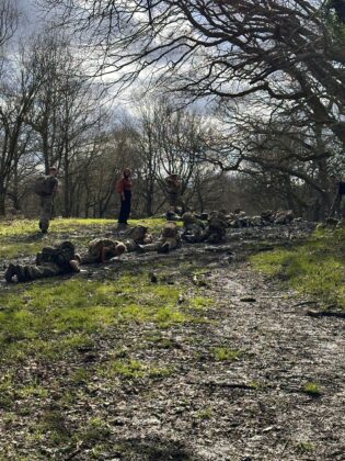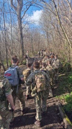 Lt Colonel (MTC) Vitalija Grundaite summed up the day: “Richard invited all cadets to tag along and what a brilliant day we all had. The walk was wet and muddy but the smiles haven’t left our faces since. During the walk cadets were doing some fieldcraft lessons, too, like camouflage and concealment and how to build the basha. Some cadets ended the walk with a celebrational jump into the lake.”
