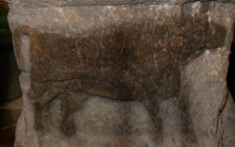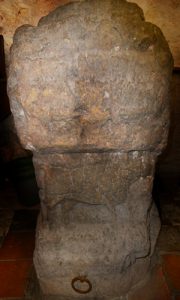 For many years this much damaged stone altar in St Mary’s Church, Stone in Oxney, has routinely been thought to be associated with the Roman religion of Mithras, often called the god of the Roman legions, whose temples were mainly built underground. In one leaflet the metal ring attached to one side is described as having been used to secure sacrificial victims, even though there is no evidence that the followers of Mithras ever engaged in this practice. Only one of the images on the four side panels of the altar is complete, that of a standing bull. The others sides show fragments of what might be bulls.