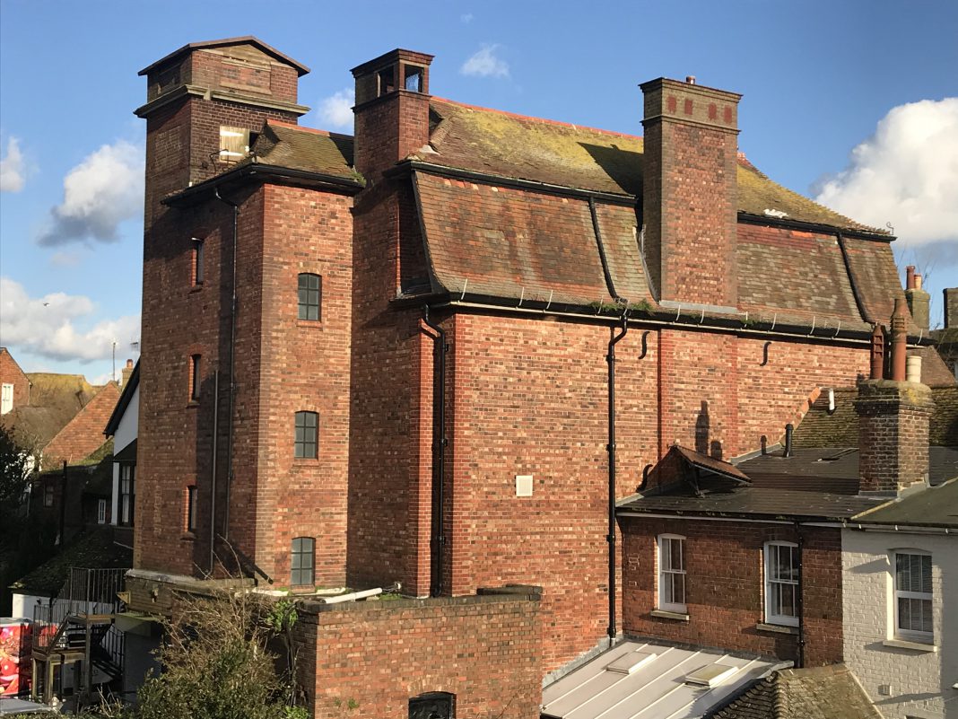 So this is an interesting history of a building being recycled and a view of the rear many may not have seen before. When looking at it I often think that it’s an ugly building but at the same time fascinating and unique to Rye and I imagine how many red bricks it took to build it. Counting them would be a very time consuming exercise and could take days, mind you, no time like the present so here we go. One, two, three, four, five …