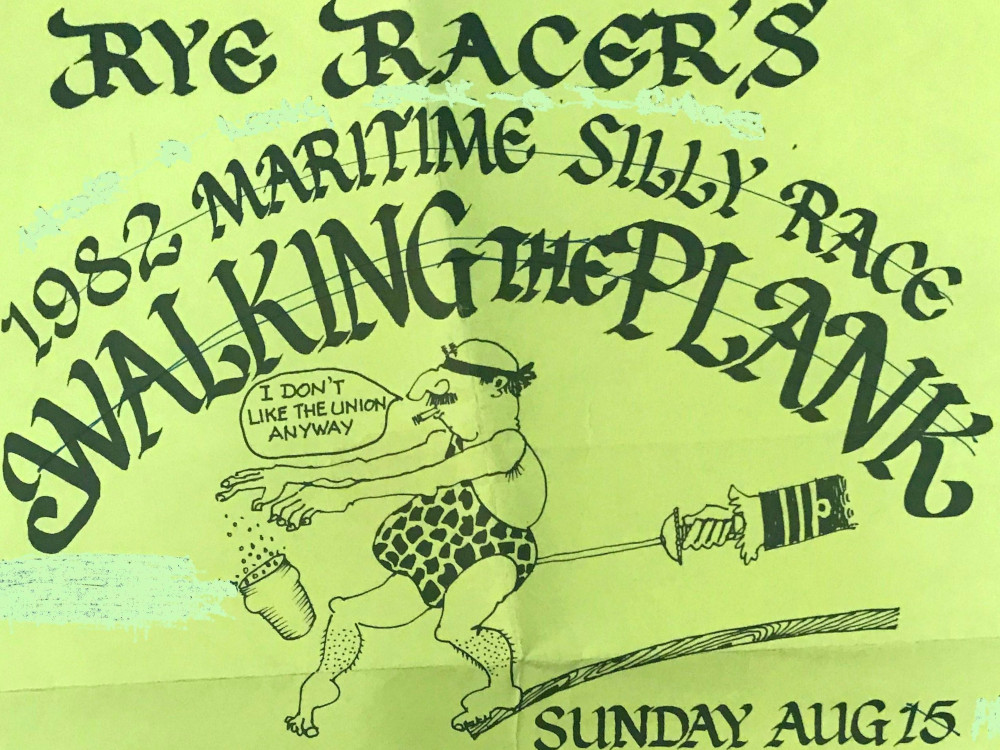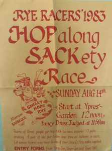 In 1982 Rye Racers’ Maritime Silly Race was “Walking the plank” (see poster above) with three in a team with each member having one foot tied to a plank, the race started from the Ypres garden 12 noon on a Sunday.