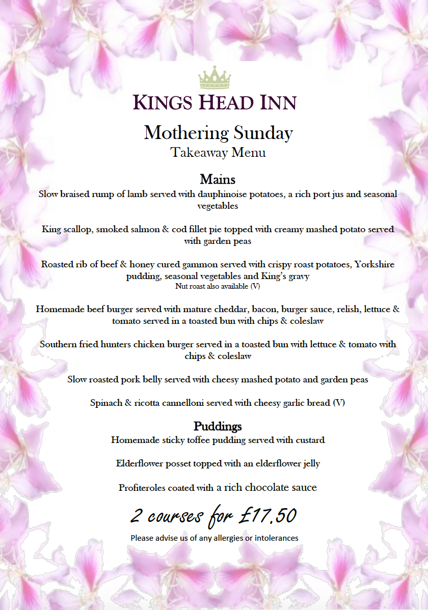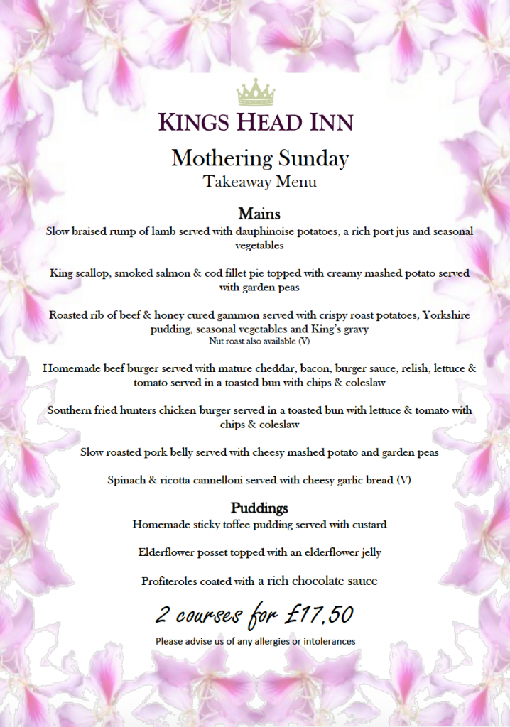 The Kings Head at the top of Rye Hill has launched its special Mothering Sunday menu which is available from 12 noon to 5pm on Sunday, March 14.