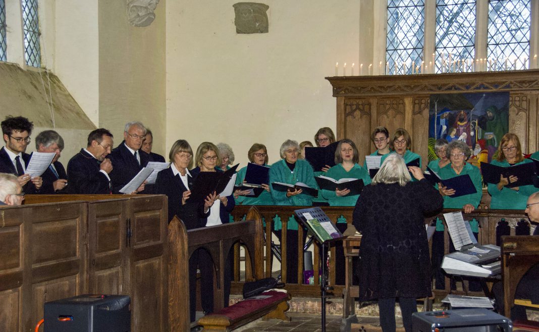 Under the benign gaze of the striking 19th century frieze of angels, illustrating the Six Days of Creation, the Rye Singers performed to an appreciative congregation during a candlelit Christmas carol service at St. Mary’s, East Guldeford, last Sunday. Their selection of carols, some offering a modern interpretation of traditional numbers, was well received, among them, a particularly impressive “Holly and the Ivy”.