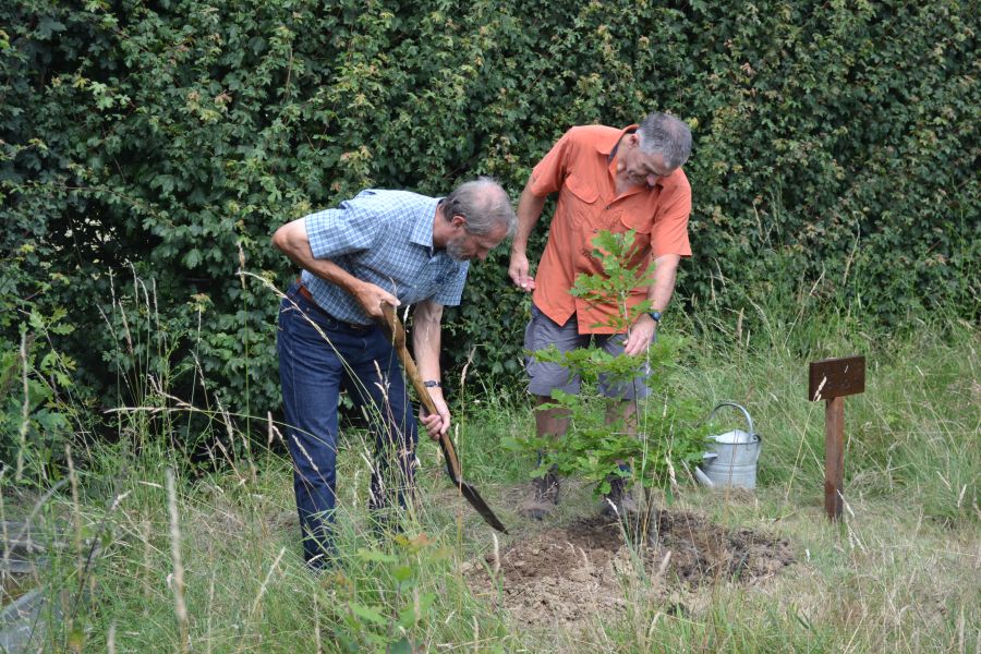 Iden Natural History Society celebrated its 100th birthday by planting an oak tree in the place closely associated with its history. A group of members and guests met at Corkwood Farm, Iden on Sunday July 20, taking with them a young sapling which Melvin and Pam Smith had planted as an acorn five years ago.