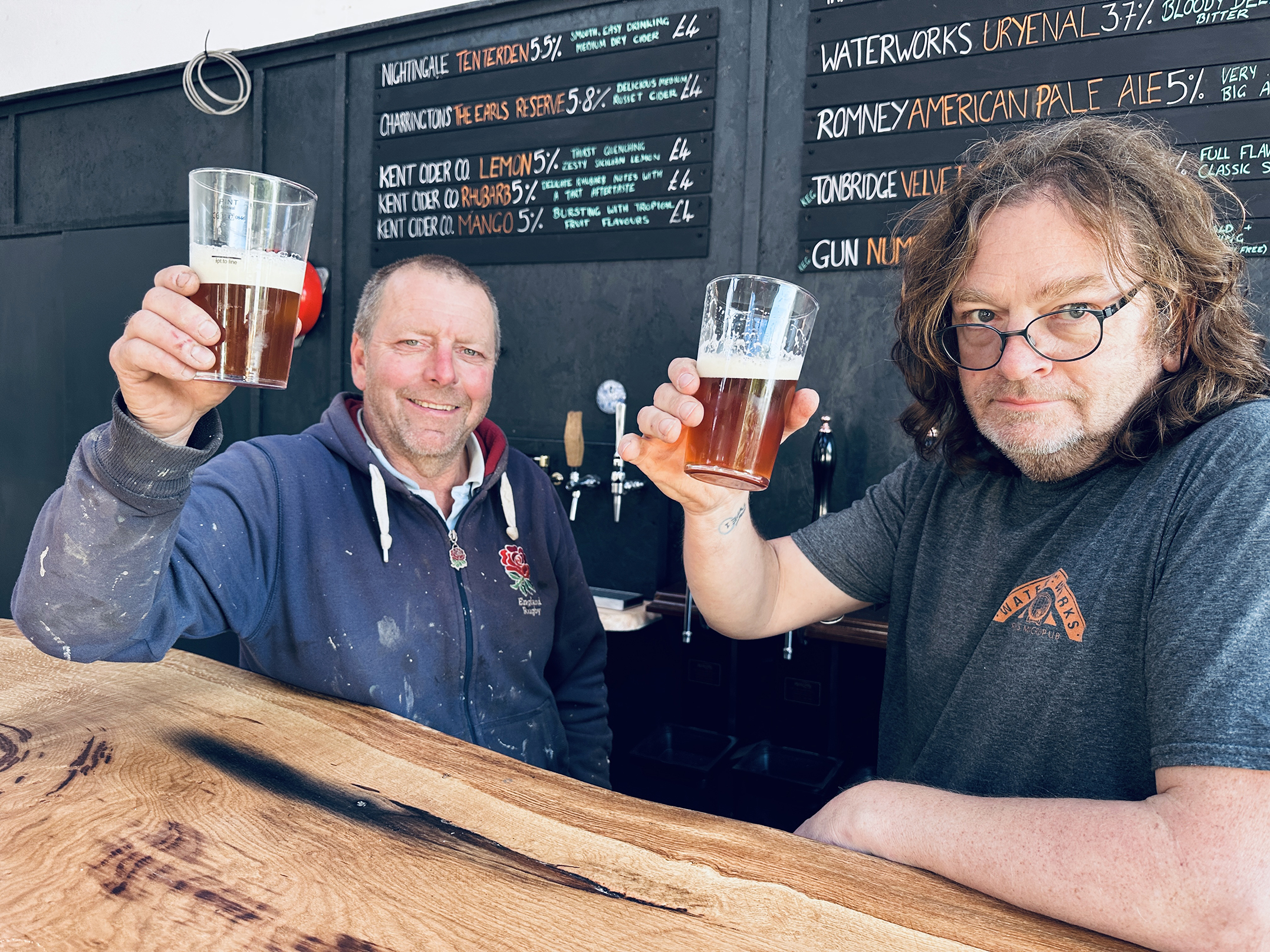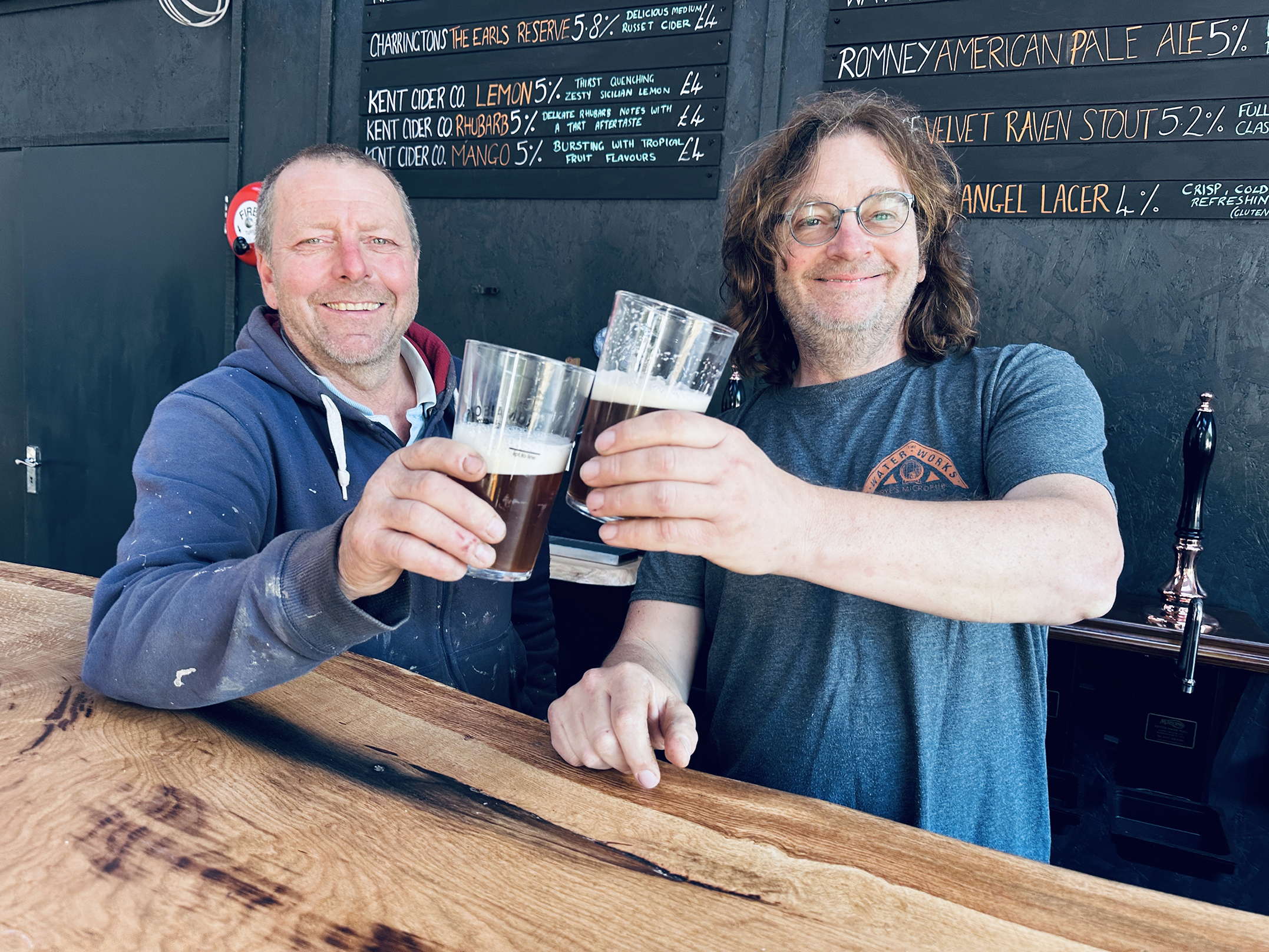 “Because of Covid everything there was taking so long so I spoke with Peter at Brumaison at Marden and asked to do a brew at his place. It was an interesting experience because we went from Three Legs Brewery, which had a vast amount of equipment, to a smaller brewery each with its own challenges. Peter had a reputation for brewing consistently good beers so we learnt a great deal from him. The thing we took away with us is that it isn’t just the equipment that is important: it is the chemistry, it’s the brewing, that is the most important thing. We did another brew at Peter’s and every time we tweaked the recipe. Our beers went down exceptionally well. Then Peter retired and we still hadn’t got our brewery up and running and people were asking for our beers so I asked Matt at Romney Brewery if we could do a brew there. We did five brews, all very successful. They have a middle-range brewery so we ended up experiencing three different-sized establishments and we learnt all the time. We experienced different brewers, different brews and different premises and we have gained a wealth of experience. So, although there have been frustrations with not getting this place ready faster, in the end it has been to our advantage.