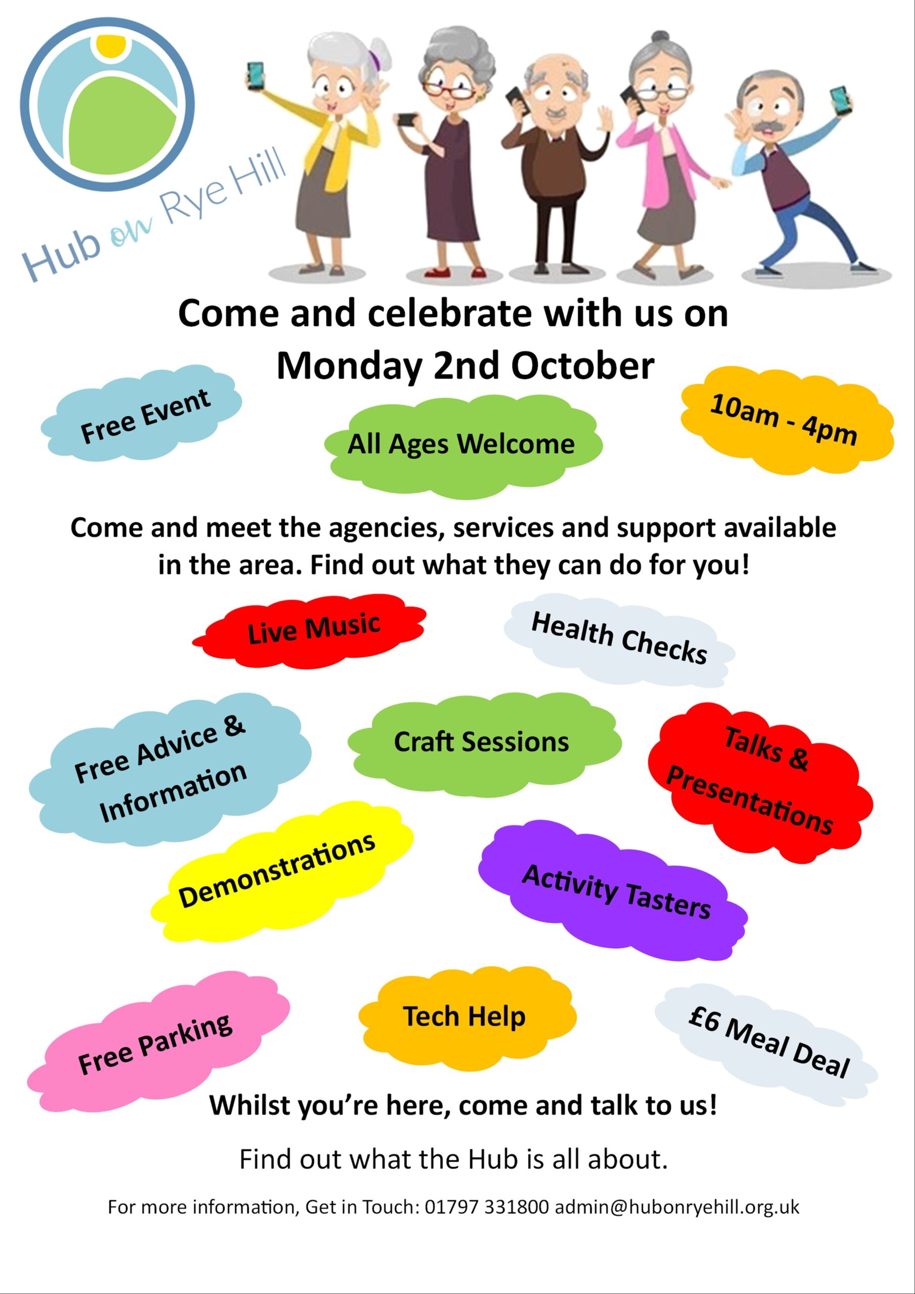 At a loose end next Monday? Why not drop in to the Hub on Rye Hill as it’s Older People’s Celebration day but you don’t have to be older to come along, as everyone is welcome whatever age you are; it is after all a community hub!