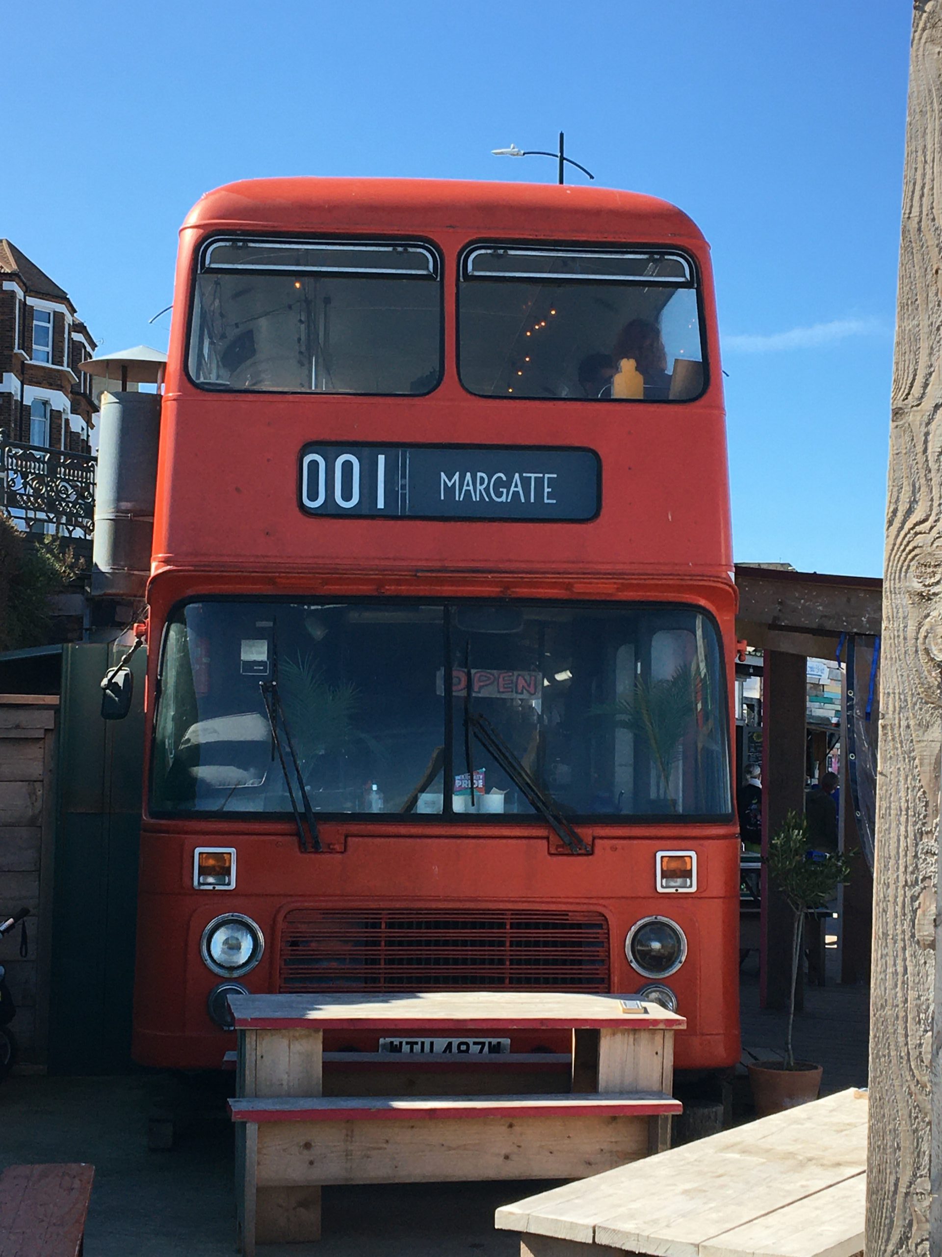 A sunny day always puts somewhere in a better light and in Margate the sun was shining, the sky was blue, but the wind certainly brought colour to your cheeks. Getting there on the train from Rye was easy – change at Ashford International then, depending on the time of day, direct to Margate.