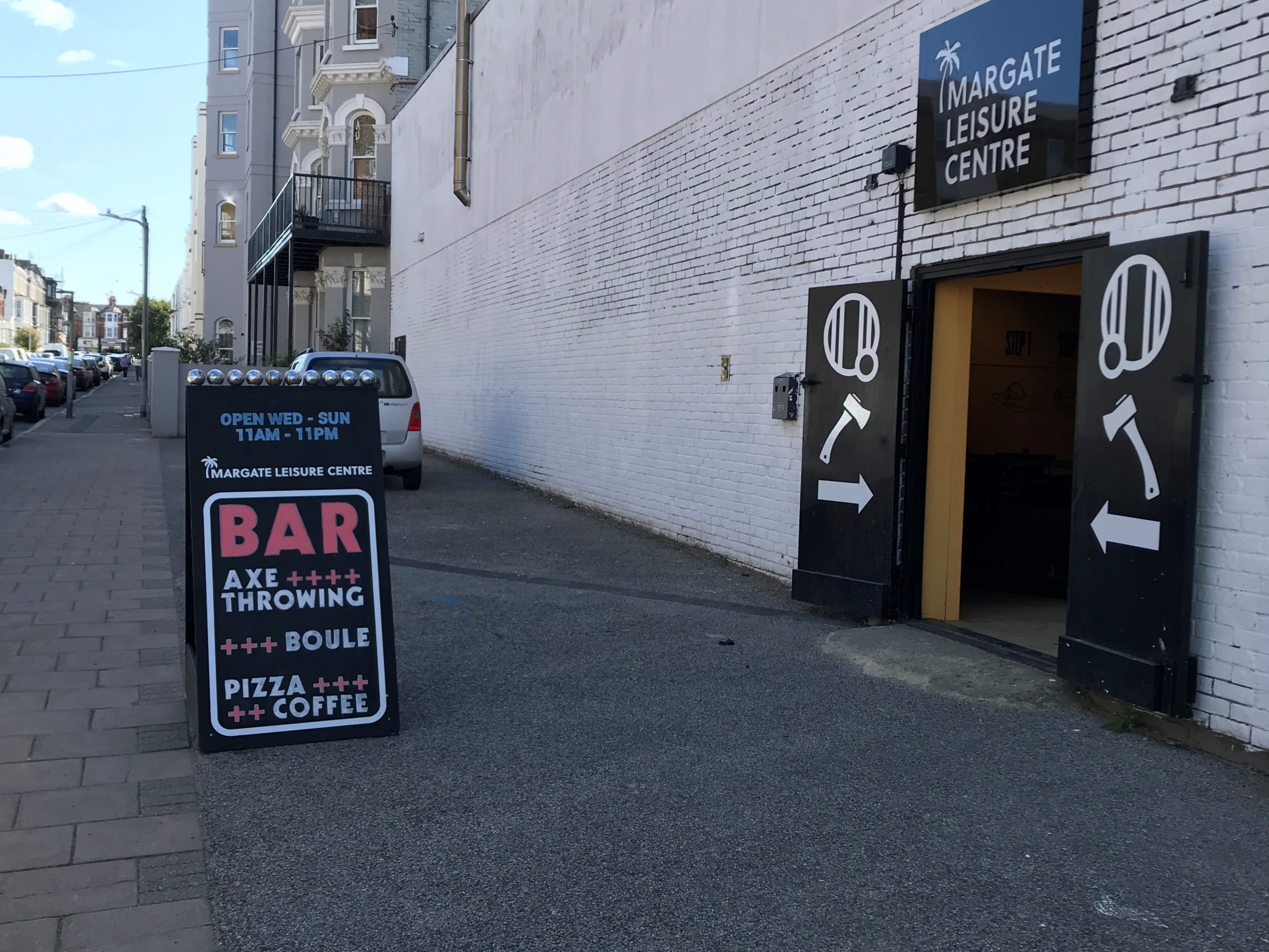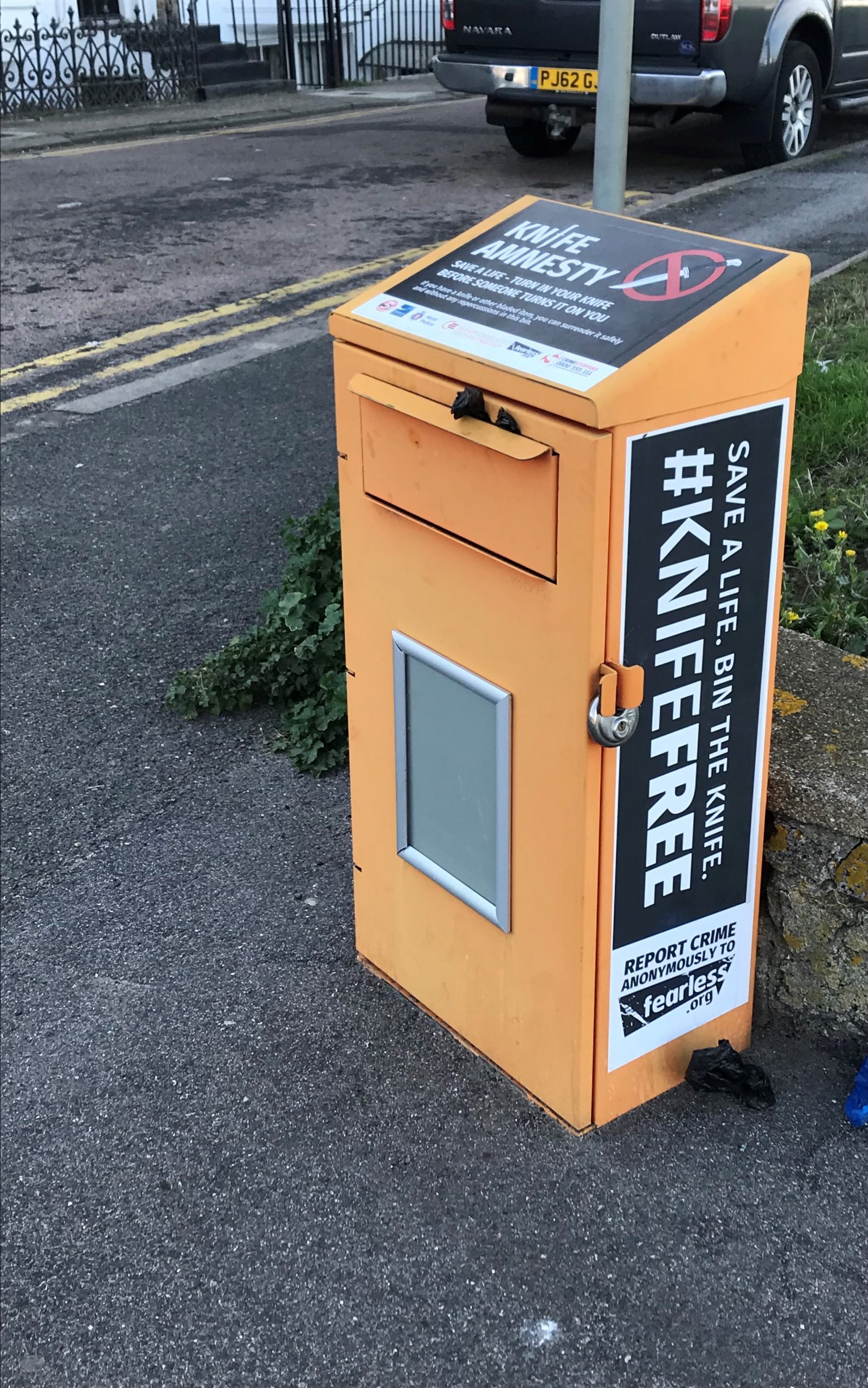 As you head further into town, you find the high street shops like any other town in the UK with the big brand multiples but also including your regular selection of vaping shops, tattoo parlours, cash converters, fast food and mobile phone outlets. The many buildings are very like Hastings – huge four and five storey Victorian and Edwardian houses, some whole but many now subdivided into flats. In one of the side roads, I stumbled across a club with an “A” board on the pavement advertising axe throwing as one of its attractions, and further along, a bin for disposing of unwanted knives as part of the council run knife amnesty scheme.