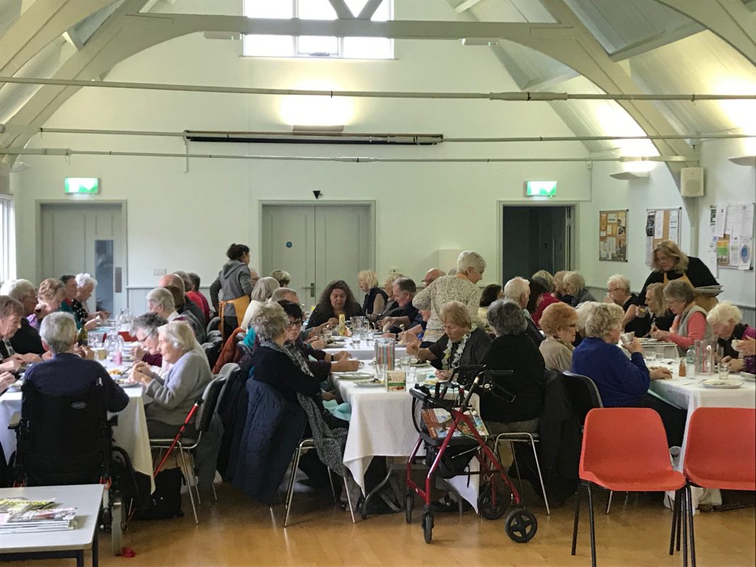 Last Monday, February 3, I was invited to follow up on my preview in Rye News and come along to the monthly lunch. By the time I had arrived the car park was full and the minibus collecting some of the guests was just unloading its eager cargo. Once inside, the hall was warm, inviting and smelt fantastic as the aroma of a professionally cooked lunch (provided by Paul Webbe from Webbes Fish Restaurant in Rye) wafted around the building.
