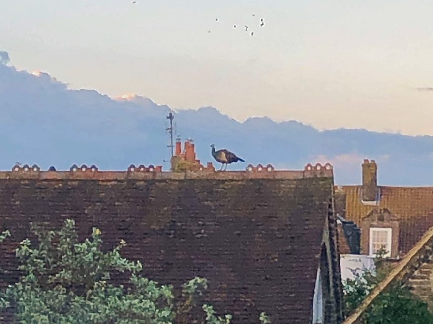 Thomas Peacocke founded Rye’s Grammar School in 1636, but the latest peacock to set foot in Rye was somewhat surprising. We are used to seagulls, starlings, jackdaws and herons, even the occasional sparrowhawk and hen harrier – but peacocks? No. Far too exotic. Until a week or so ago when, one evening while drawing the curtains there appeared on the roof of the Kino not one, but two peacocks. They wandered down the roof and vanished.