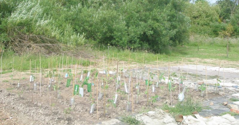 Once in, the plants were watered and then a netting defence against the ever-present (and hungry) rabbits was put in place.