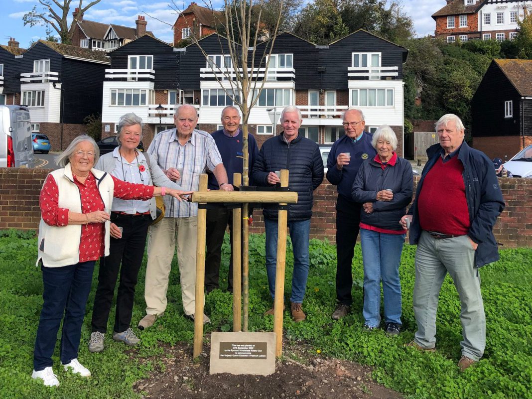 On Monday, October 31 Rotary president Bill Coleman supported by fellow Rotarians and partners from the Rotary Club of Rye & Winchelsea added the stone plaque to the site of a Hawthorn tree planted on Strand Quay to commemorate the Queens’ platinum jubilee.