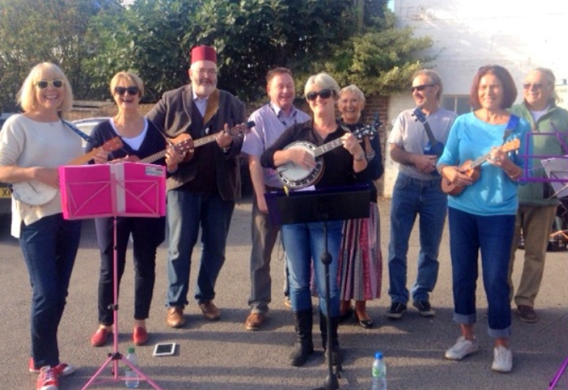 When BBC Sussex was in town last Friday as part of its coast and country tour coverage it invited the Rye Ukelele Experiment along to add a little music to the show. Reporter Simon Jenkins even joined in with one of the songs. The ukulele group meets every week at The Queens Head in Landgate on a Tuesday evening at 7.30pm. All newcomers and any level of player are welcome. The group’s next booking will be on October 28 at The Queens Head to support the Wild Boar Week (October 26 to November 2) with some piggy-themed songs. Find out more about the group on its website.