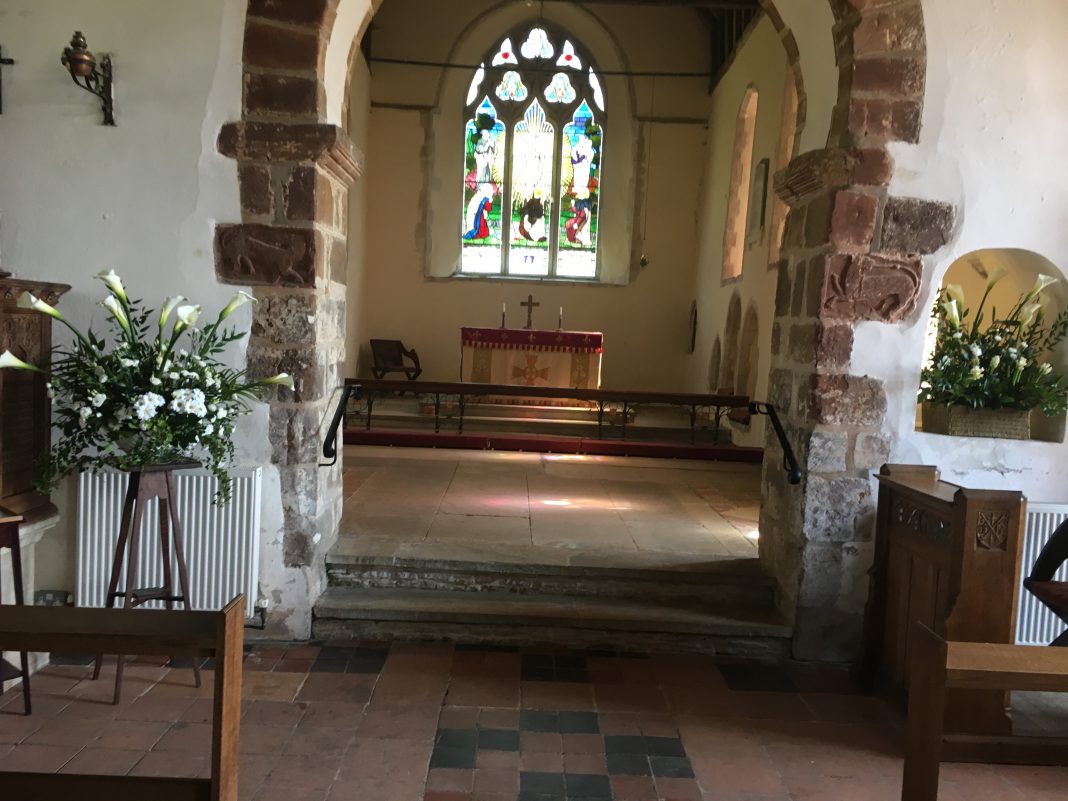 This year, new flower arrangers were ready to take on the pleasure of setting the beautiful lilies in their place, with lots of greenery and some additional white flowers to complement the four big arrangements. Mrs Angela Brassleay is pictured with one sited on the font and the other pictures are of the entrance and the ones by the pulpit and in the squint.