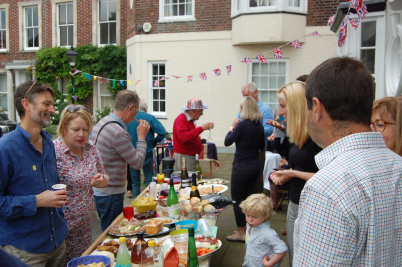 Residents of Market Street held a party on Saturday, June 18 in celebration of HM Queen Elizabeth’s recent 90th birthday. Passers-by were warmly invited to join in and many did, including visitors from France and Germany. Cakes and ale, sausage rolls and fruit cup, even quails’ eggs and champagne were produced and consumed.