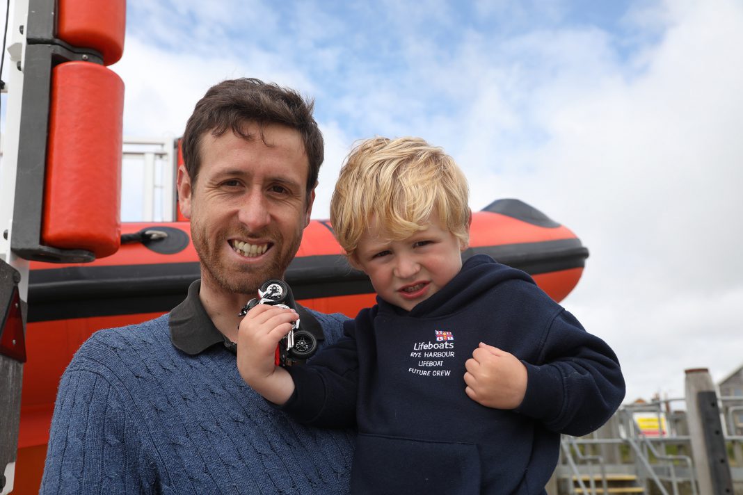 Rye Harbour Lifeboat station was a buzz of activity on Sunday, June 16, Father’s Day. We celebrated by taking photos of the crew with their children and the crew with their dads, some with a long history of volunteering with the lifeboat service themselves.