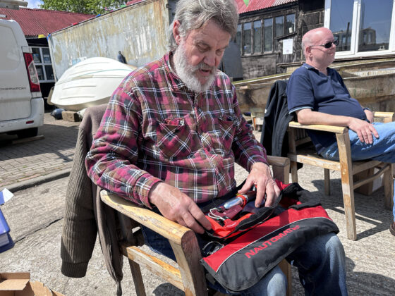 RNLI Rye Harbour is very aware of the many potential hazards that can befall people when they set out to have fun on the water. On Sunday, May 7 Richard and Jonathan Curd opened up their boatyard to host a boat jumble and a life-jacket surgery. The Curds wanted to make it day of fun as well as taking water safety seriously. They had a barbecue, a bar and live music with Matt the Boat.
